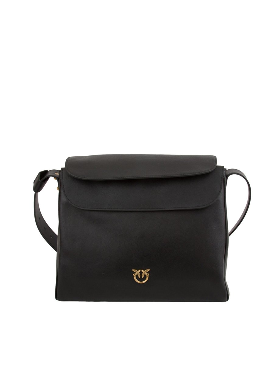 Borsa a spalla Pinko realizzata in pelle a grana, manico regolabile e chiusura con gancio a moschettone con patta.