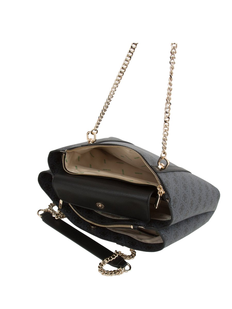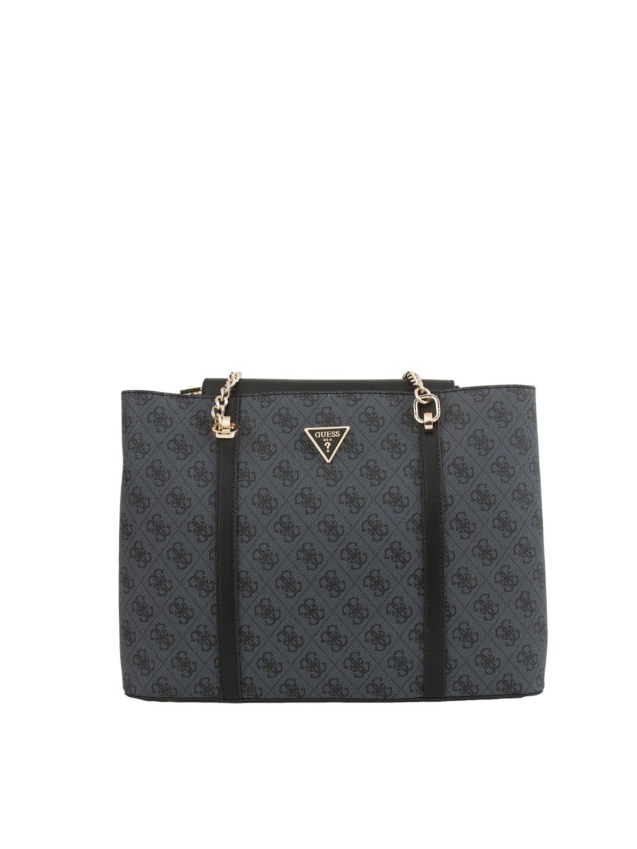 Borsa a spalla Guess Jeans realizzata in simil pelle, manici con parti in catena, charm pendente removibile e piedini protettivi in metallo.