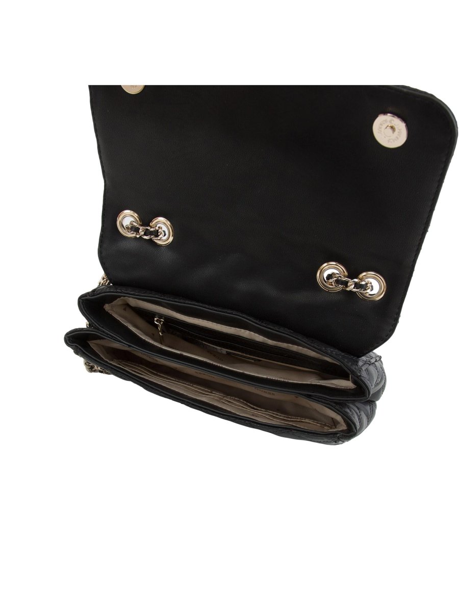 Женская сумка через плечо Guess Jeans из стеганой искусственной кожи с застежкой на двойной клапан с пуговицами и логотипом спереди. Модель дополнена металлическими деталями из золота и плечевым ремнем с переплетенной цепочкой. Прекрасно подойдет для летних вечеров. Размеры: 25 х 17 х 7 см.