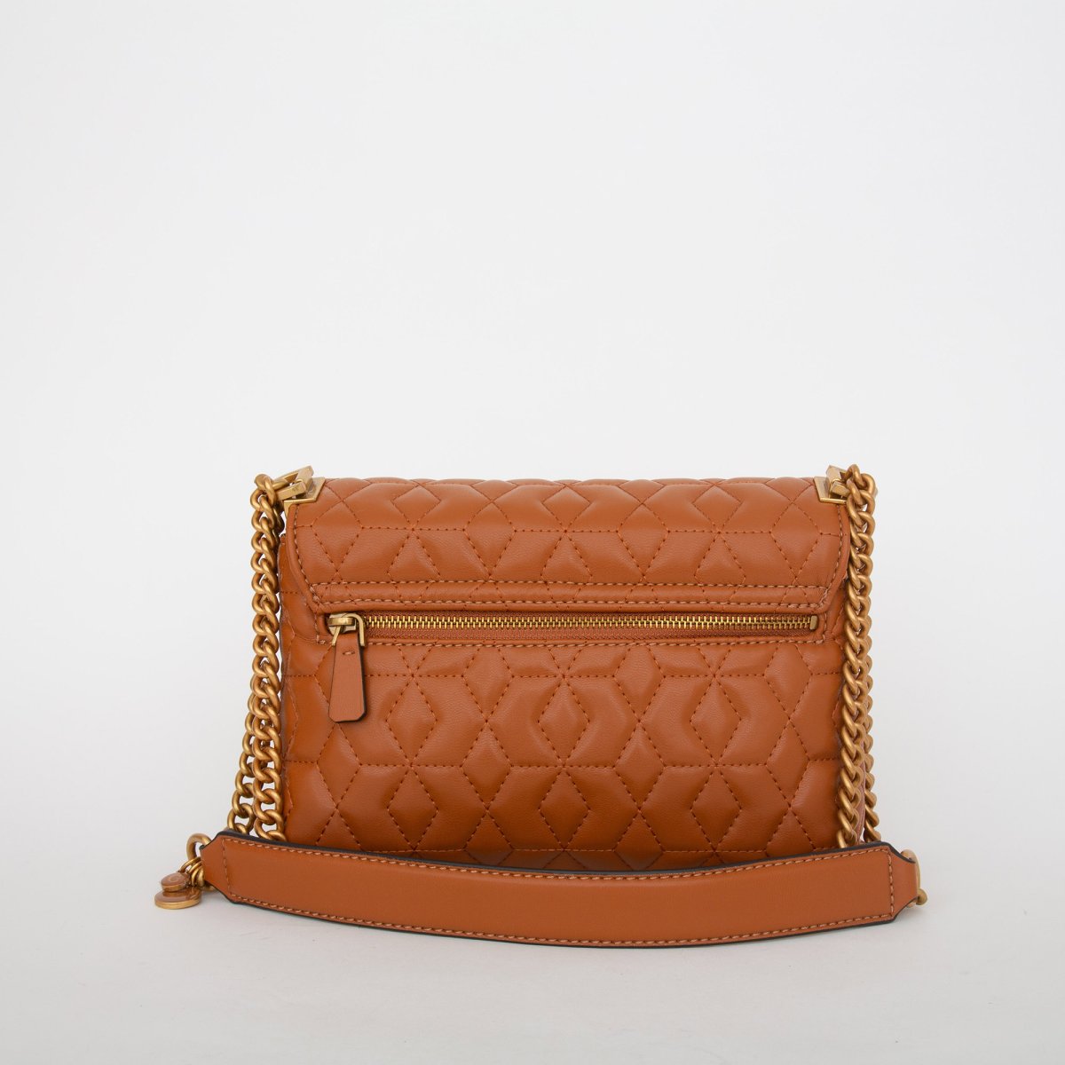 Borsa a tracolla Elenia donna Guess in ecopelle trapuntata. Chiusura con patta e doppio bottone magnetico. Tracolla girevole in ecopelle e metallo. Dimensioni: L: 26 cm x A: 18 cm x P: 9 cm