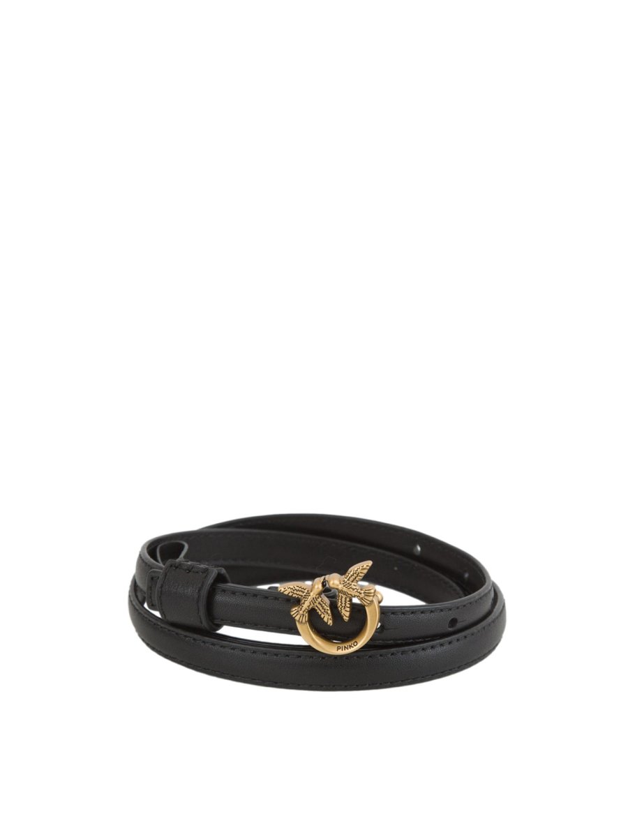 Cintura sottile in pelle con mini fibbia Love Birds Diamond Cut in metallo. 1 cm