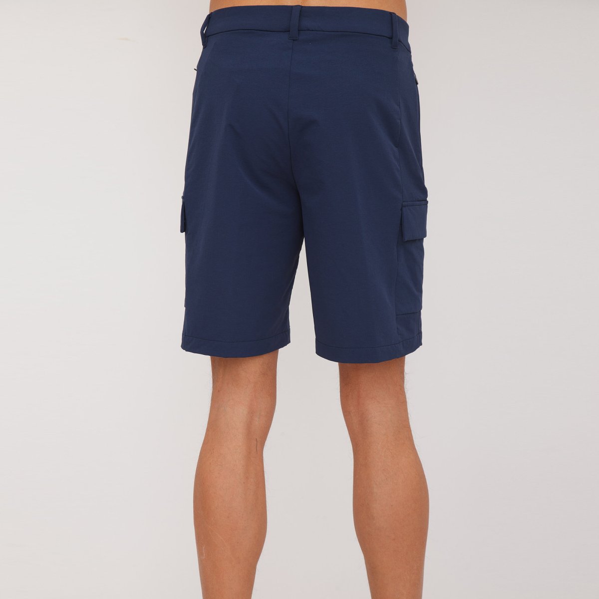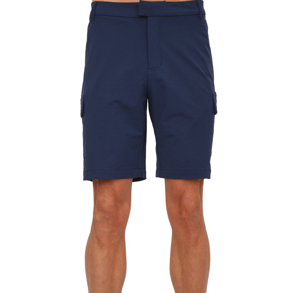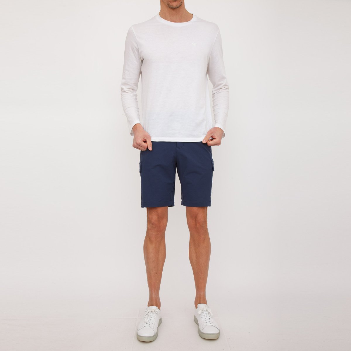 Bermuda golf club in tessuto tecnico, vestibilità regular plus, cintura con passanti, chiusura con gancio e zip, due tasche con patta e logo EA7 a contrasto sulla gamba destra.