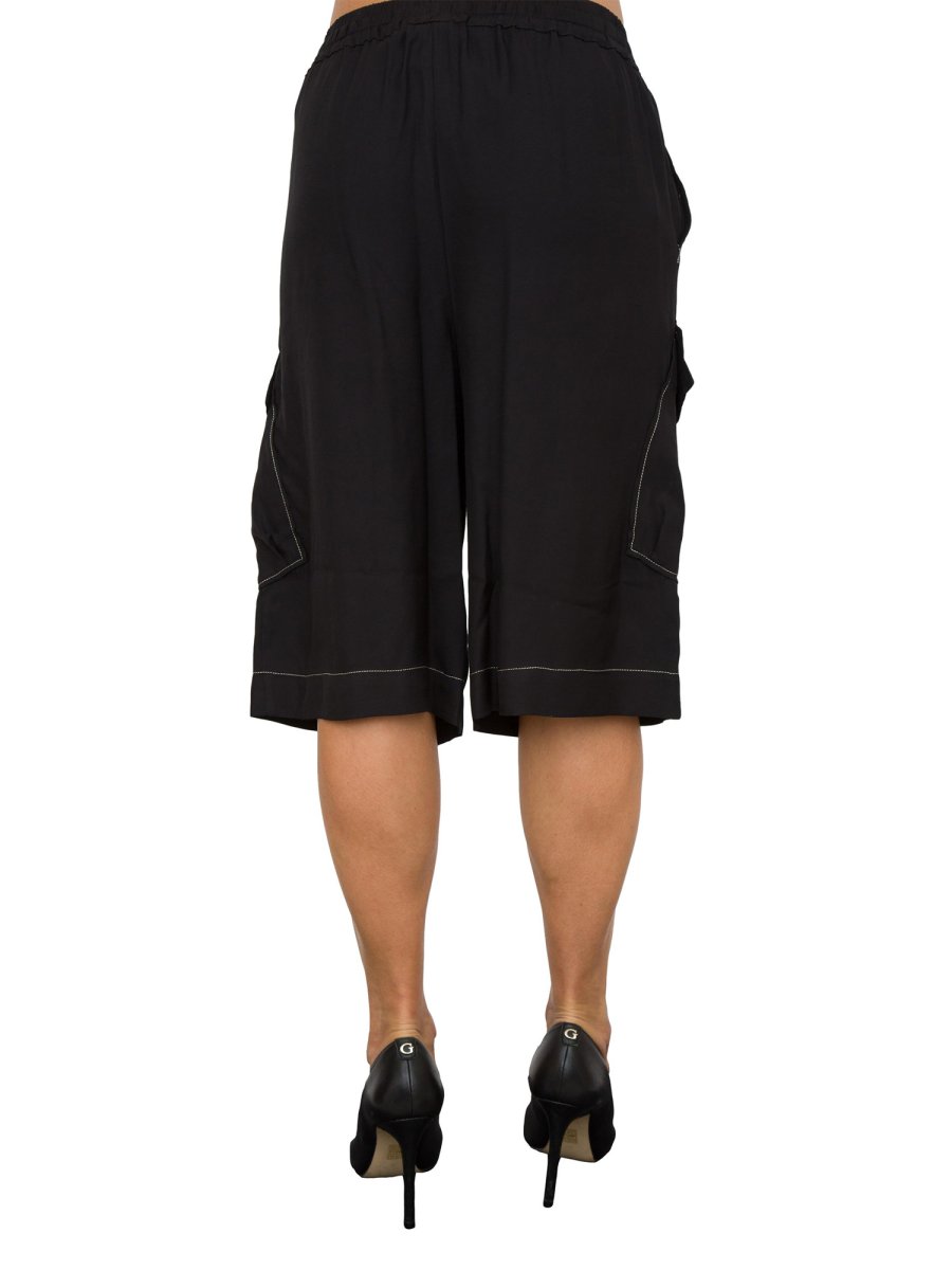 Pantaloni bermuda cargo in twill di viscosa. Vita alta con elastico e coulisse da annodare e gamba dalla linea dritta e leggermente ampia con tasche alla francese sui fianchi e maxi tasche utility laterali.