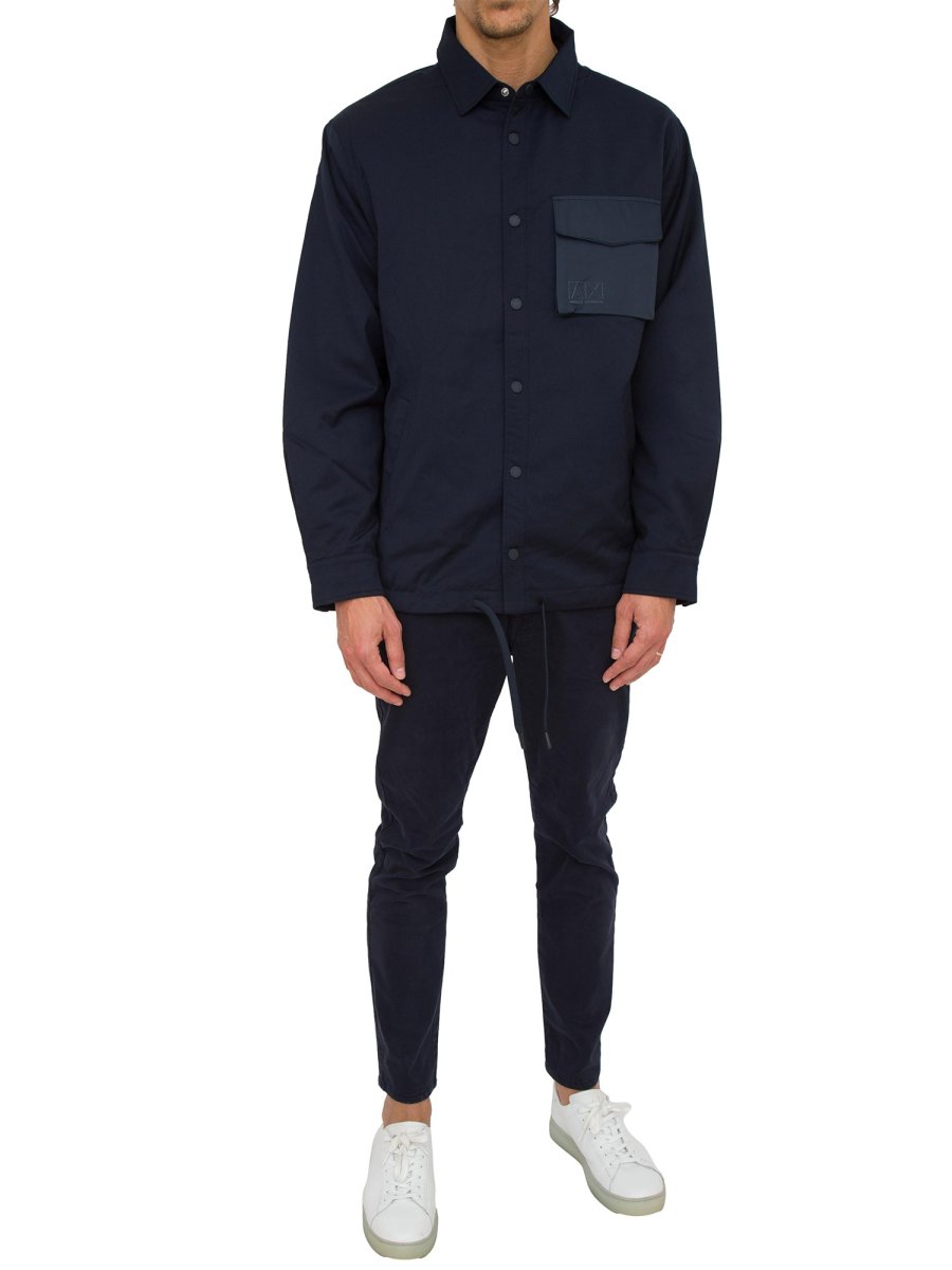 Giubbino da uomo in misto lana stretch con colletto a camicia e chiusura a bottoni.