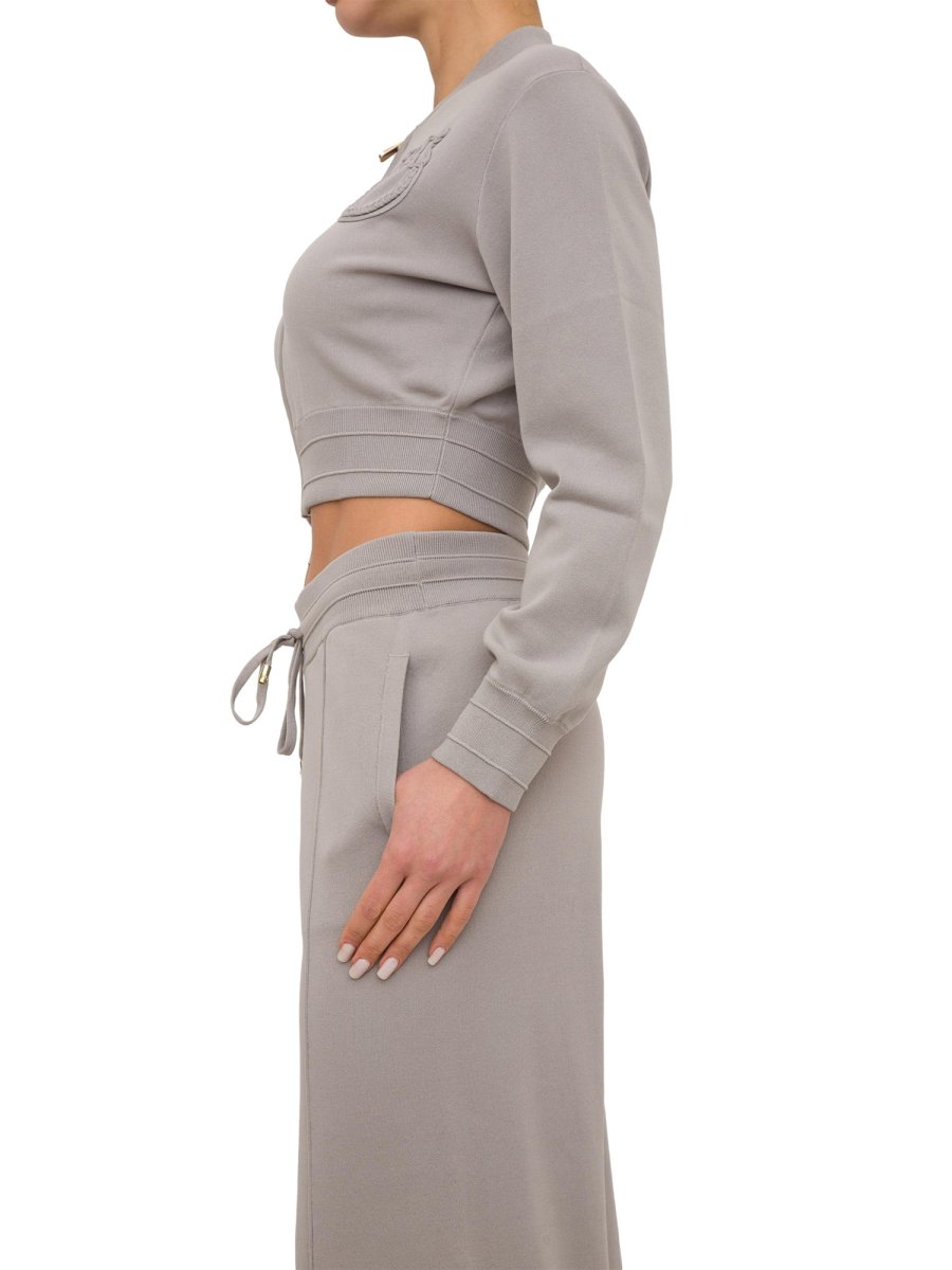 Giacca bomber corta in tessuto rasato di misto cotone tecnico effetto felpa. Piccolo colletto a bomber, maniche lunghe a giro basso e personalizzazione con ricamo logo Love Birds davanti, lato cuore. Chiusura con zip davanti.