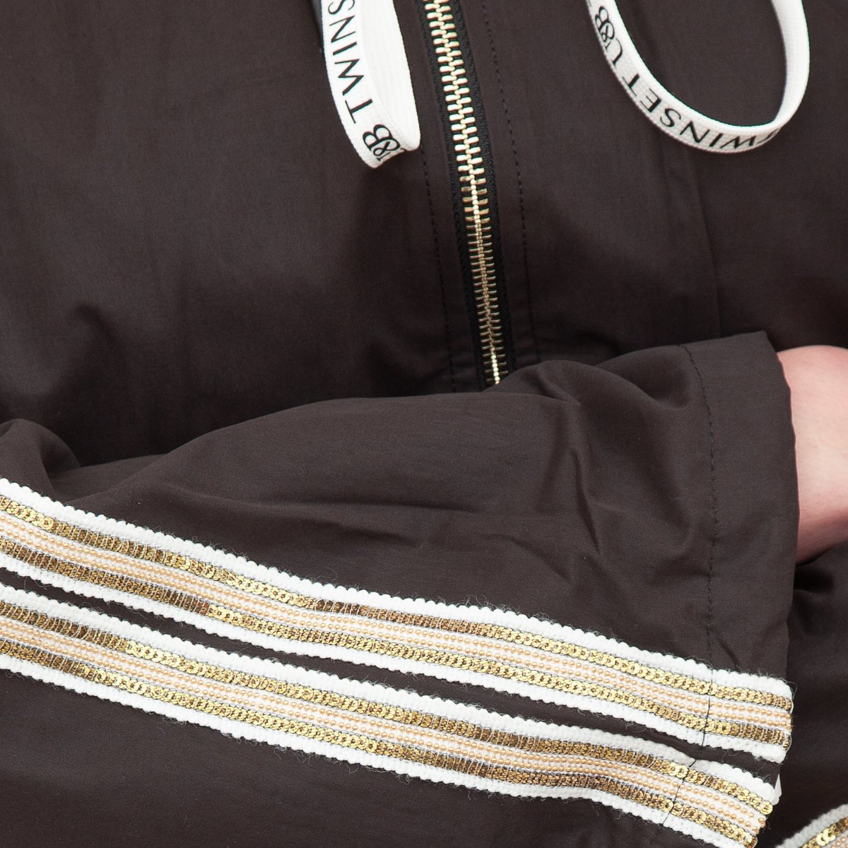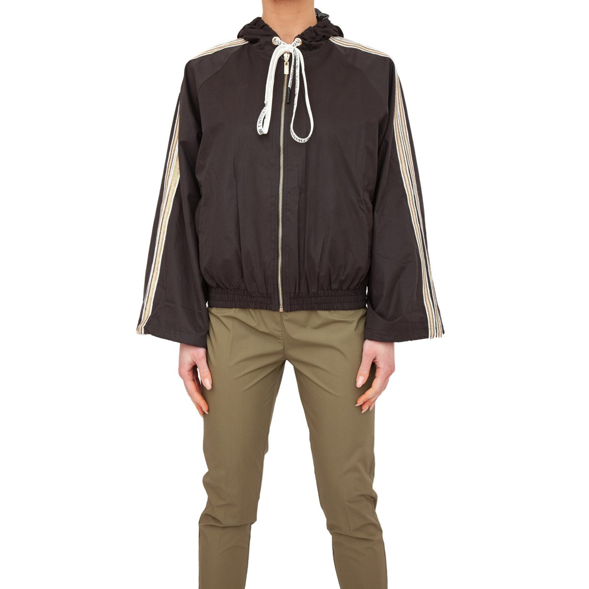 Giacca a bomber in tessuto tecnico di misto cotone con bande in passamaneria di tulle con ricamo di paillettes e filo. Questo modello fa parte della capsule collection Sport.