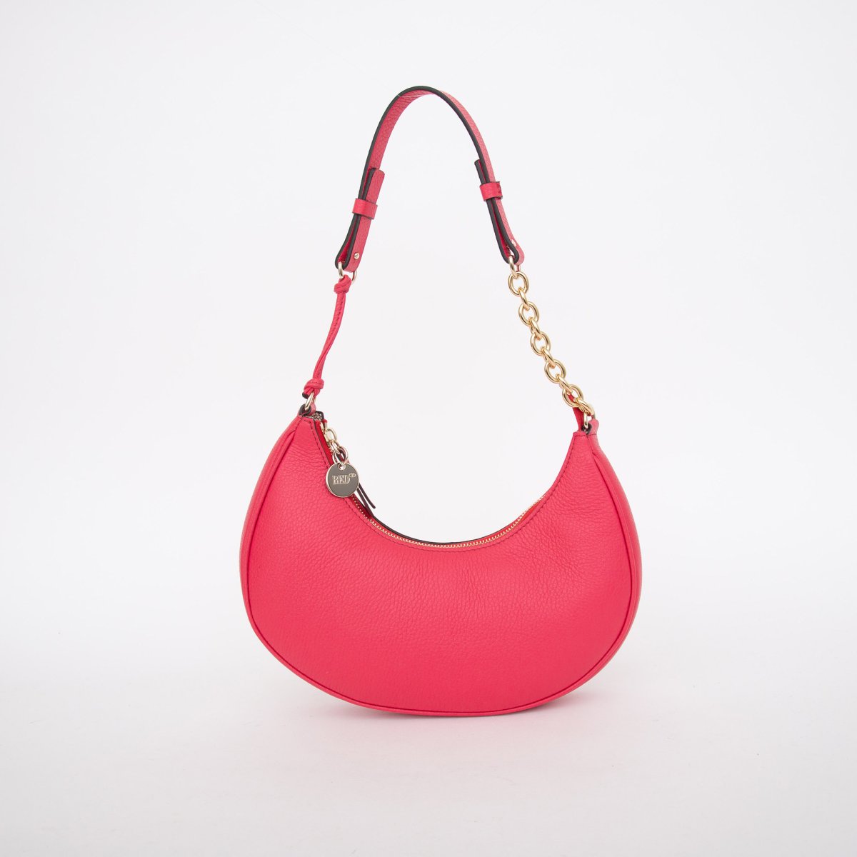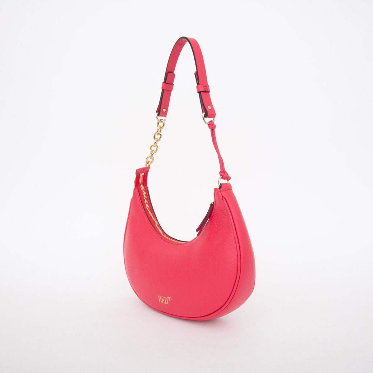 Borsa hobo a spalla in pelle granata. Tracolla non regolabile e non removibile. Chiusura con zip. Fodera in cotone stampata con motivo iconico point d'esprit. Finiture e parti metalliche oro chiaro.