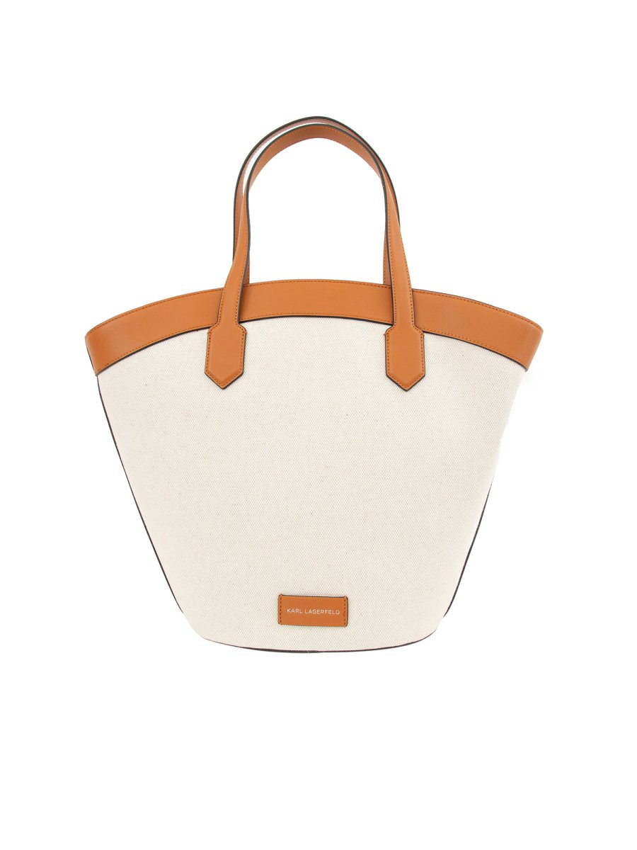 Borsa tote, con struttura in tela resistente ma al tempo stesso flessibile, è impreziosita da dettagli in pelle tecnica e dalla grafica traforata KARL Circle sul davanti.