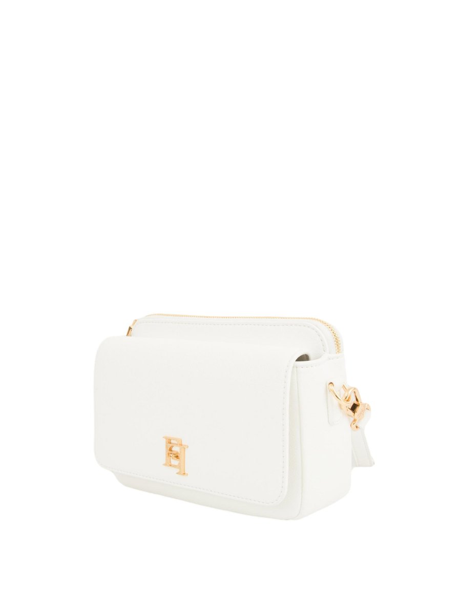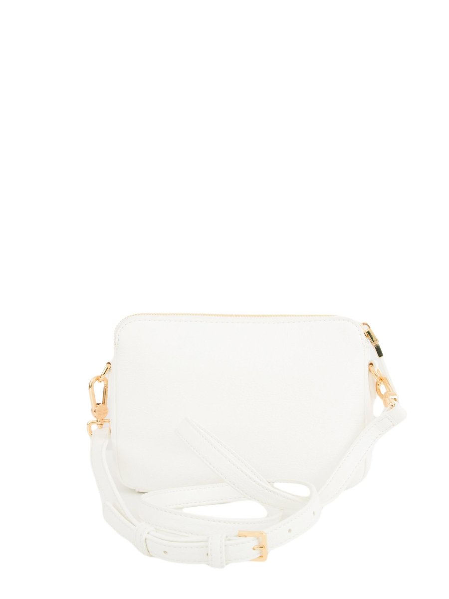 Borsa a tracolla regolabile in materiale sintetico effetto pelle bottalata. È caratterizzata da tasca anteriore con patta e placca logo in metallo dorato diamantato. Dimensioni 20.5 x 14 x 7cm