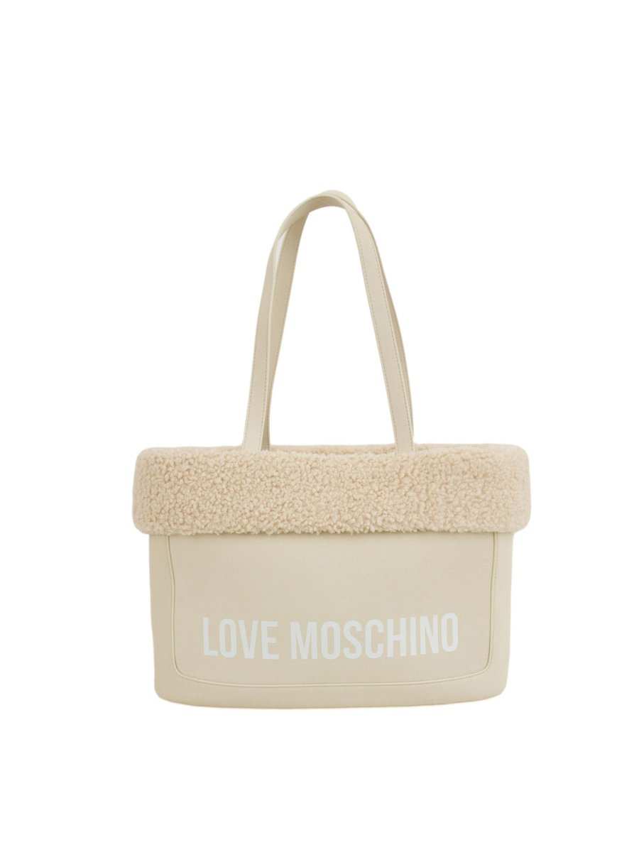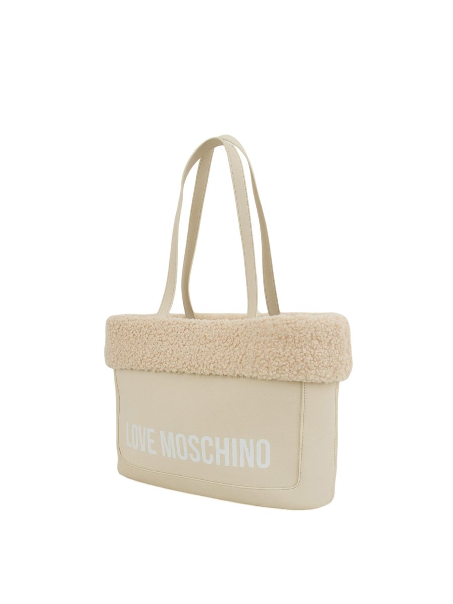 Borsa tote con logo Love Moschino, pelle cruelty-free, shearling, stampa con logo sul davanti, parte superiore aperta, chiusura nascosta con bottoni a pressione, due manici lunghi, tasca interna con zip e tasca interna a soffietto. Profondità 13 cm Altezza 24 cm Larghezza 39 cm.