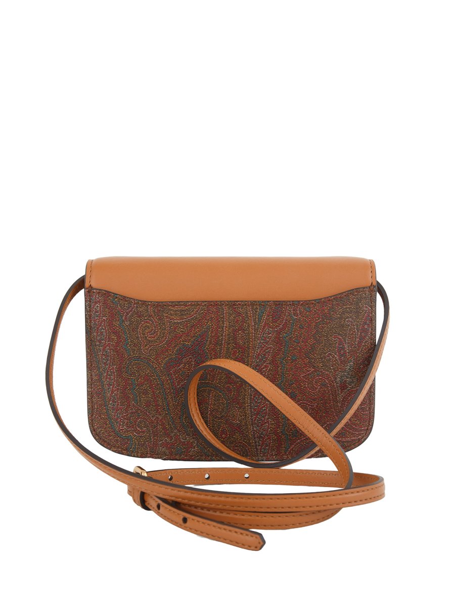 Borsa a tracolla ETRO Essential piccola della collezione Sfilata Donna Autunno Inverno 2023, realizzata nell'iconico tessuto Paisley jacquard e caratterizzata da una chiusura con patta in pelle a contrasto e bottone con logo ETRO e Pegaso. La borsa al suo interno rivela una fodera in suede ed è perfetta per essere indossata a spalla o a tracolla, oppure a mano. 19 x 14 x 4,5 cm