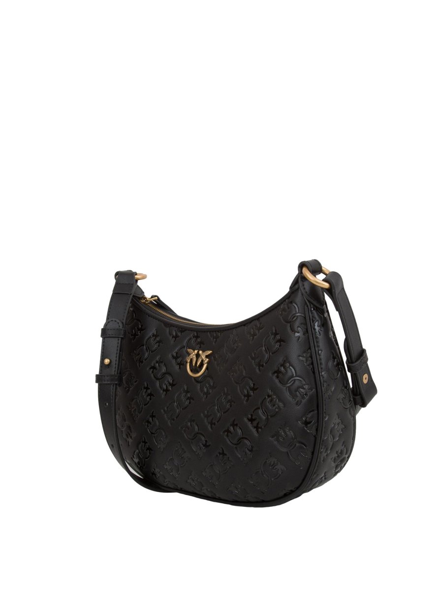 Мини-сумка Love Bag Half Moon характерной формы в виде полумесяца из мягкой шелковистой кожи, персонализированная металлической пластиной с бриллиантовой огранкой Love Birds, покрытие из состаренного золота. Внутренняя часть выполнена из замшевой микрофибры, имеется кожаный ремень для ношения на плече. Застегивается на молнию.