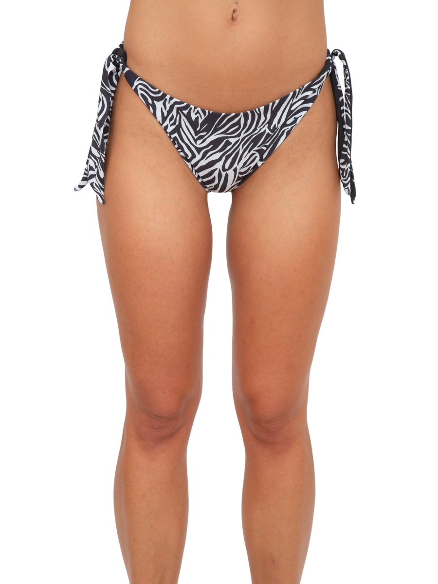 Slip mare con stampa animalier all over, fiocchetti sui lati e charm stella in metallo sul retro.