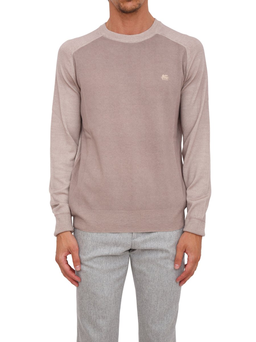 Maglia girocollo Etro in lana vergine decorata con il logo ETRO e Pegaso sul petto ricamato tono su tono.