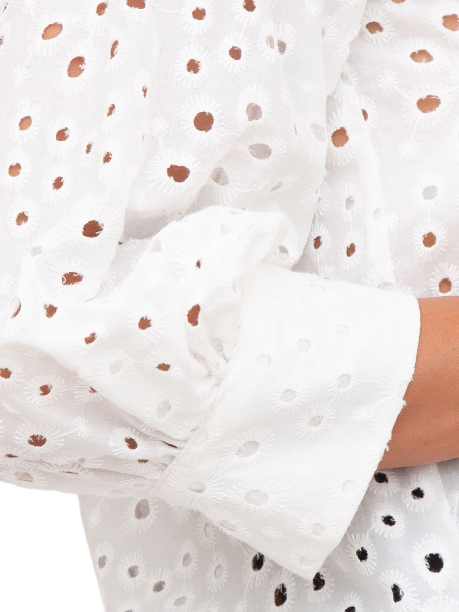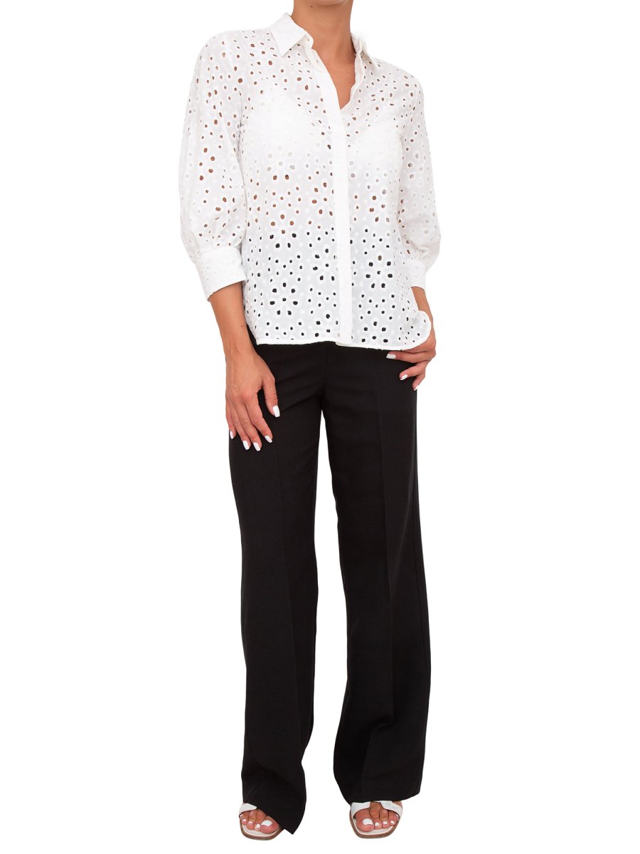 - Описание100%Camicia Marella in Sangallo di cotone, linea dritta. Collo a camicia, maniche ampie a tre quarti con polsino sul fondo. Chiusura con bottoni nascosti. Spacchi laterali arrotondati, fondo retro più lungo.