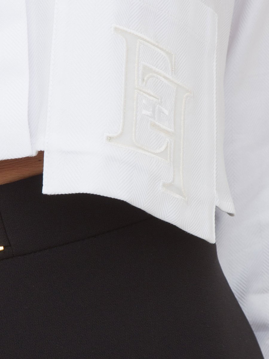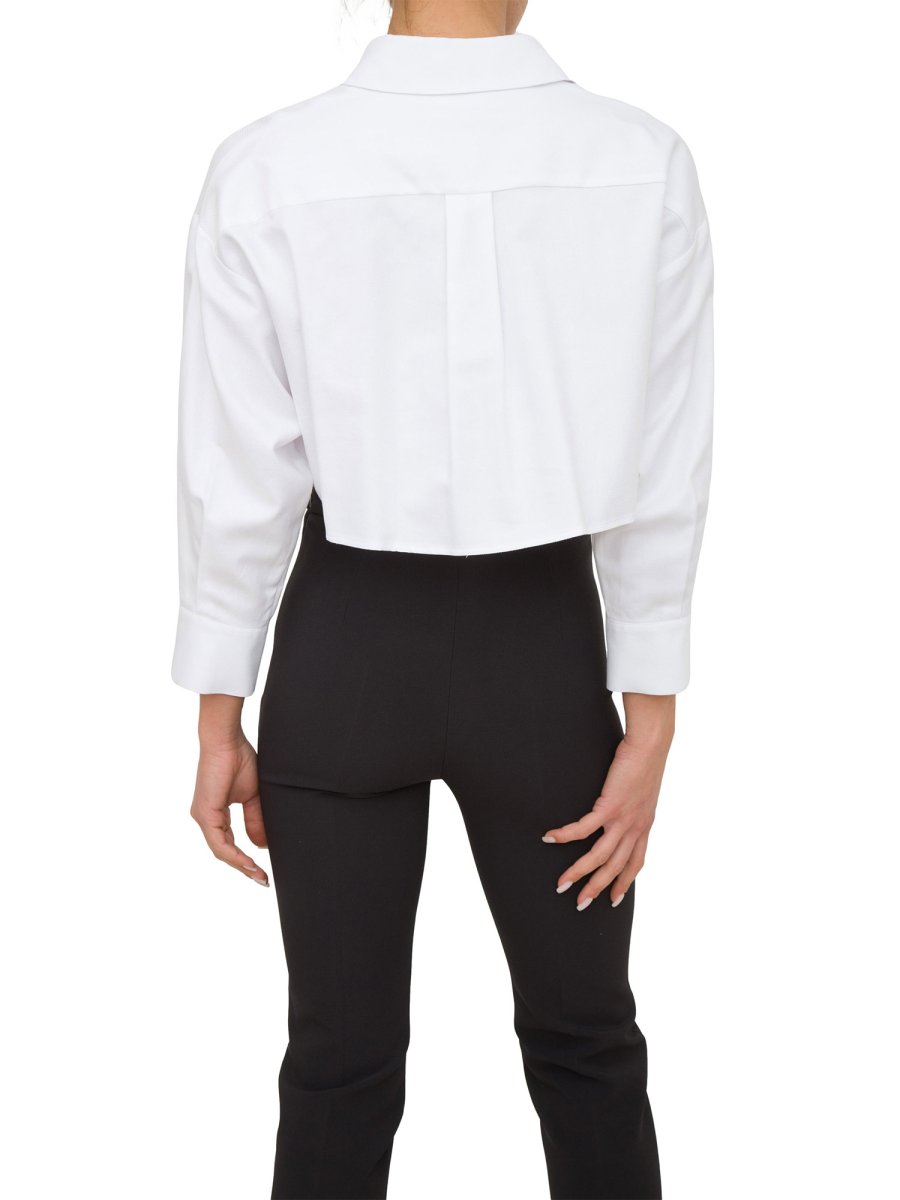Camicia cropped a maniche a 3/4 in popeline di cotone armaturato. È caratterizzata da finte tasche con ricamo in tono in organza.