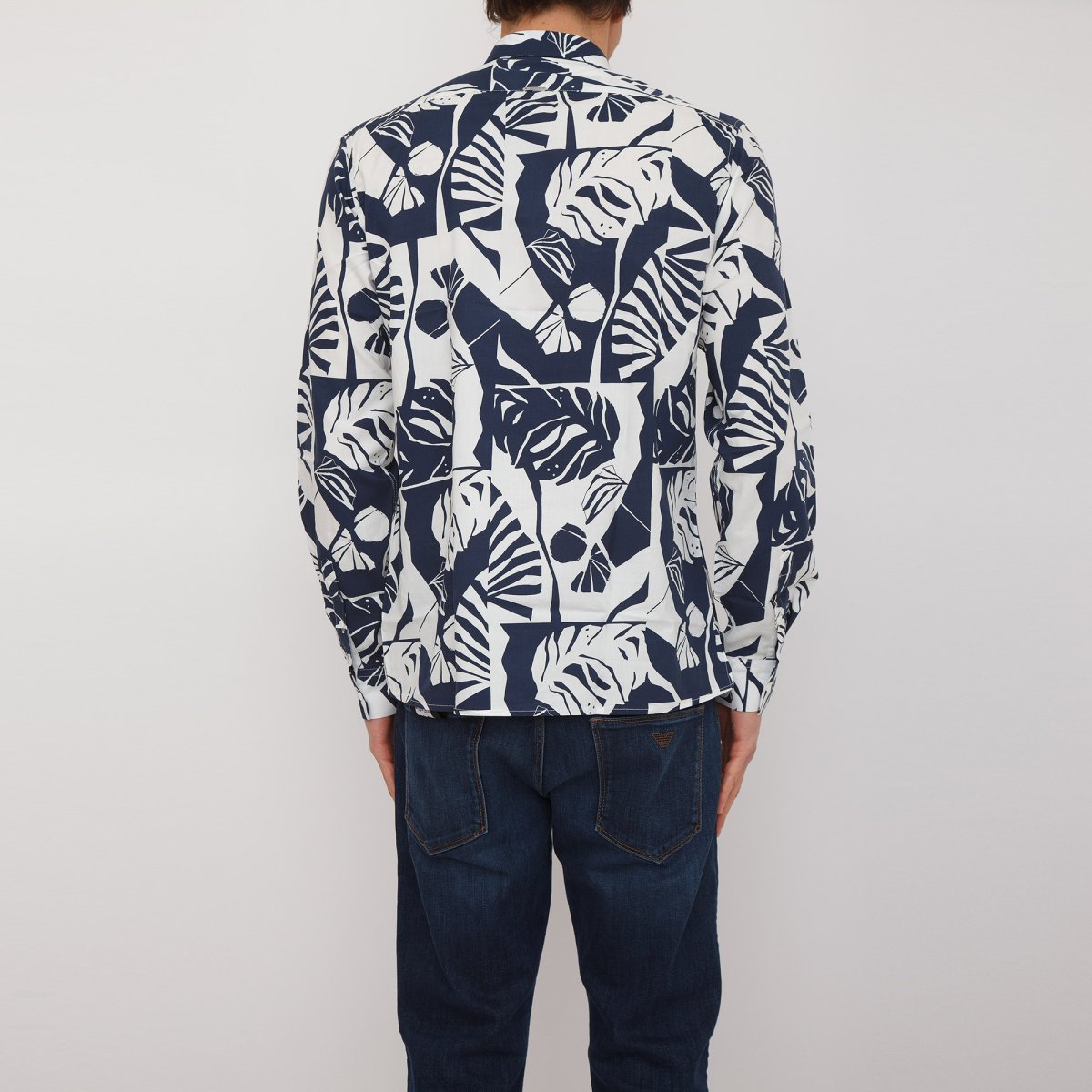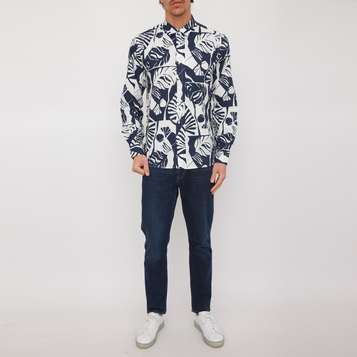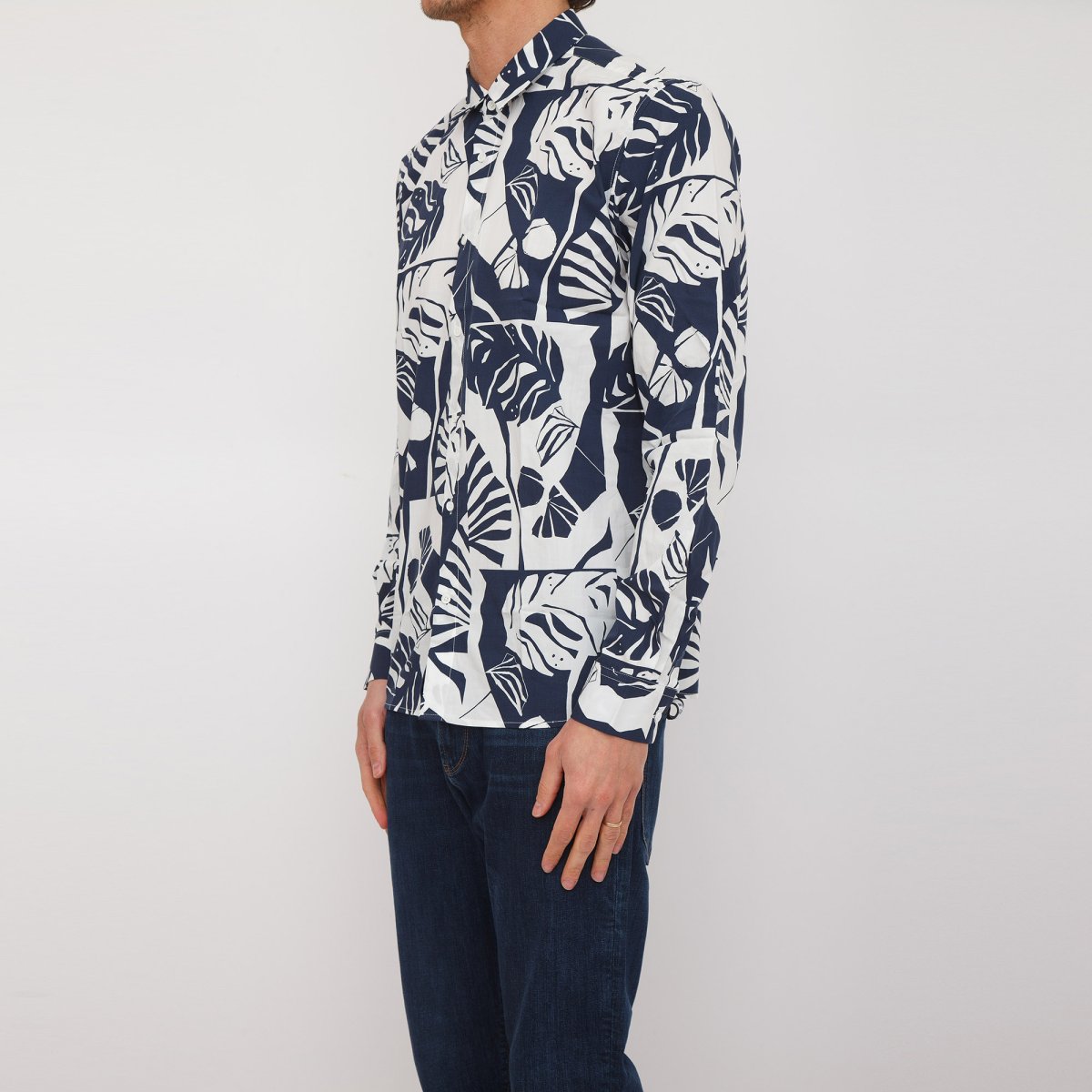 Camicia straight fit in misto viscosa con macrostampa foglie.