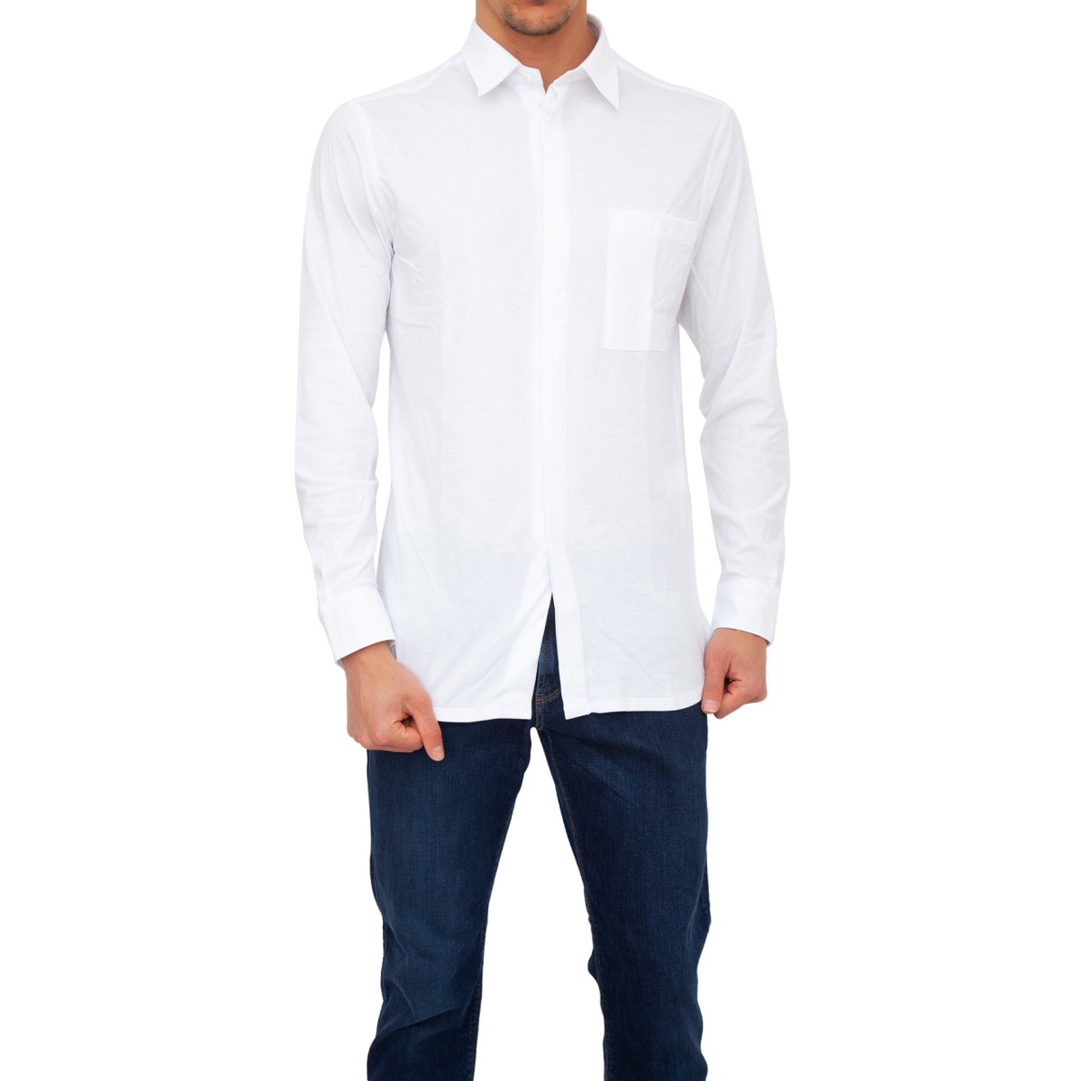 Мужская рубашка с длинным рукавом PAOLO PECORA Camicia Jersey BIANCO