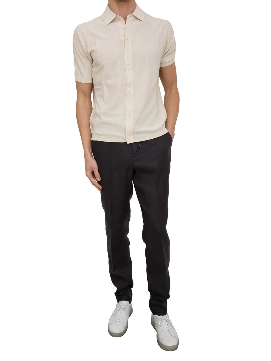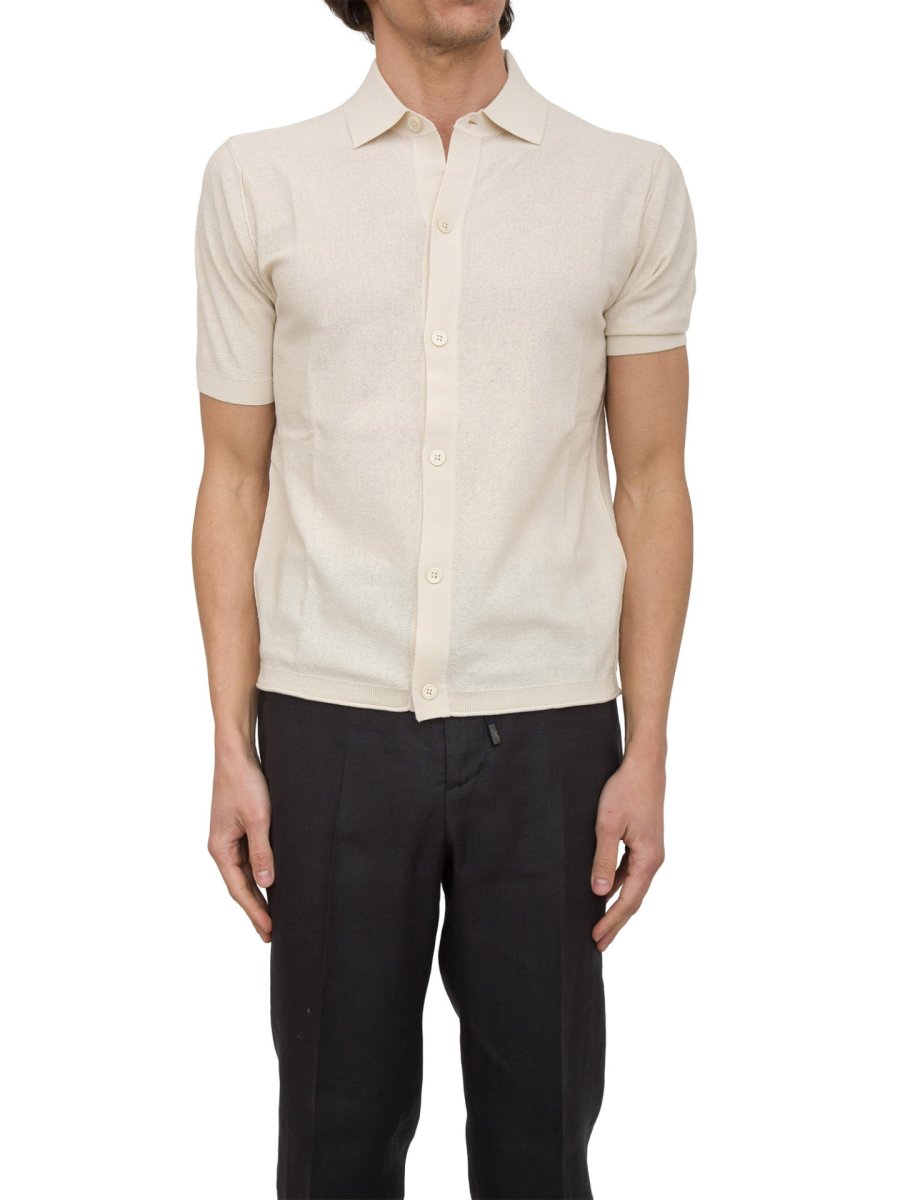 Трикотажная рубашка с короткими рукавами, из чистого хлопка высшей степени тонкости. Нежный фактурный рисунок придает дизайну глубину, а крой и классический воротник повышают его универсальность.