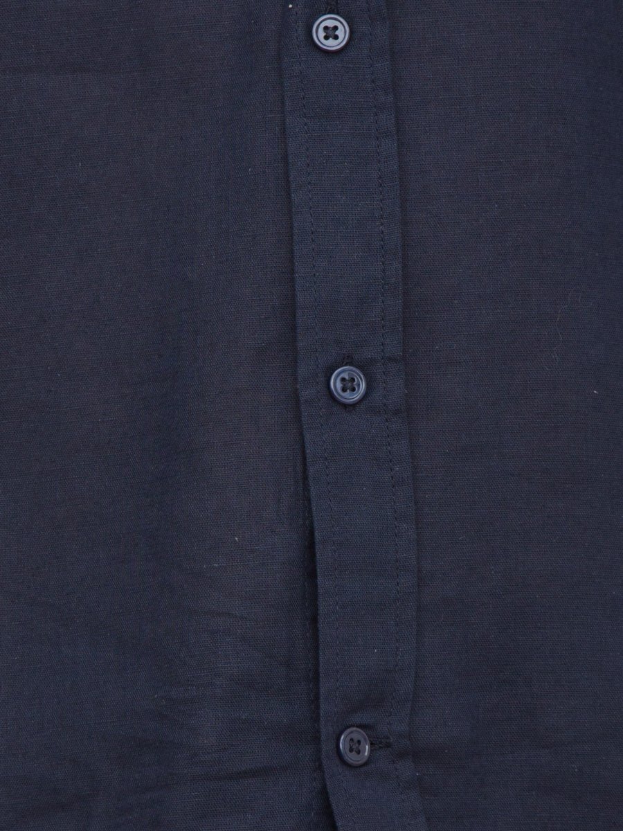 camicia maniche lunghe, senza collo, dalla vestibilitá ampia, con abbottonatura nascosta, in popeline di cotone misto lino e lacchetta logata sul retro.