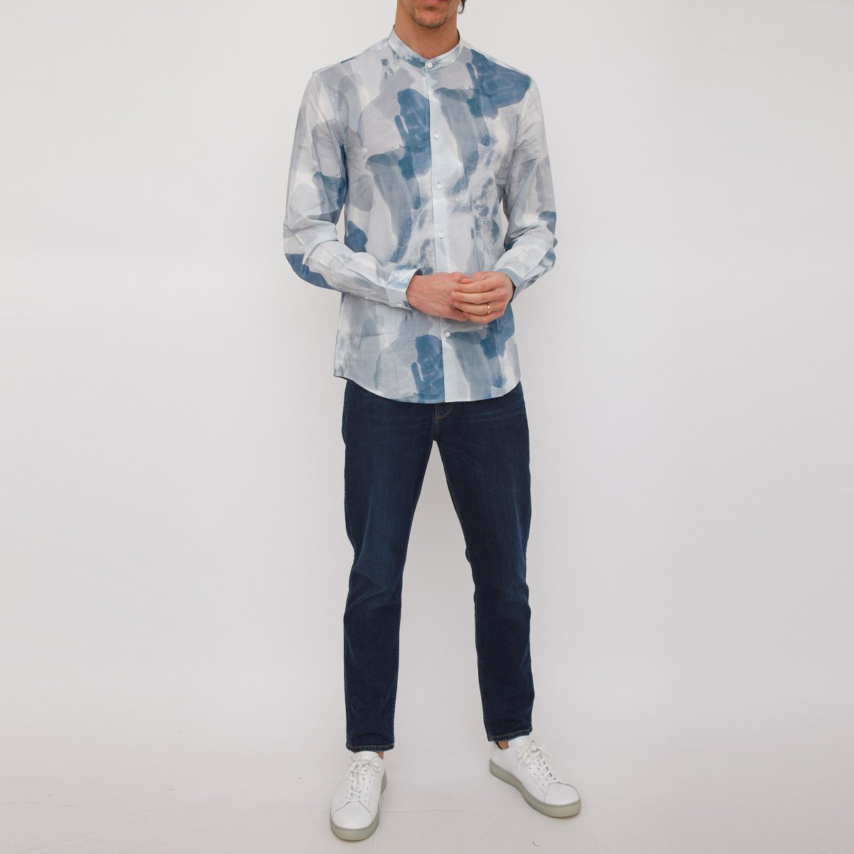 Camicia slim fit in puro cotone stampato soft-touch con collo alla coreana.