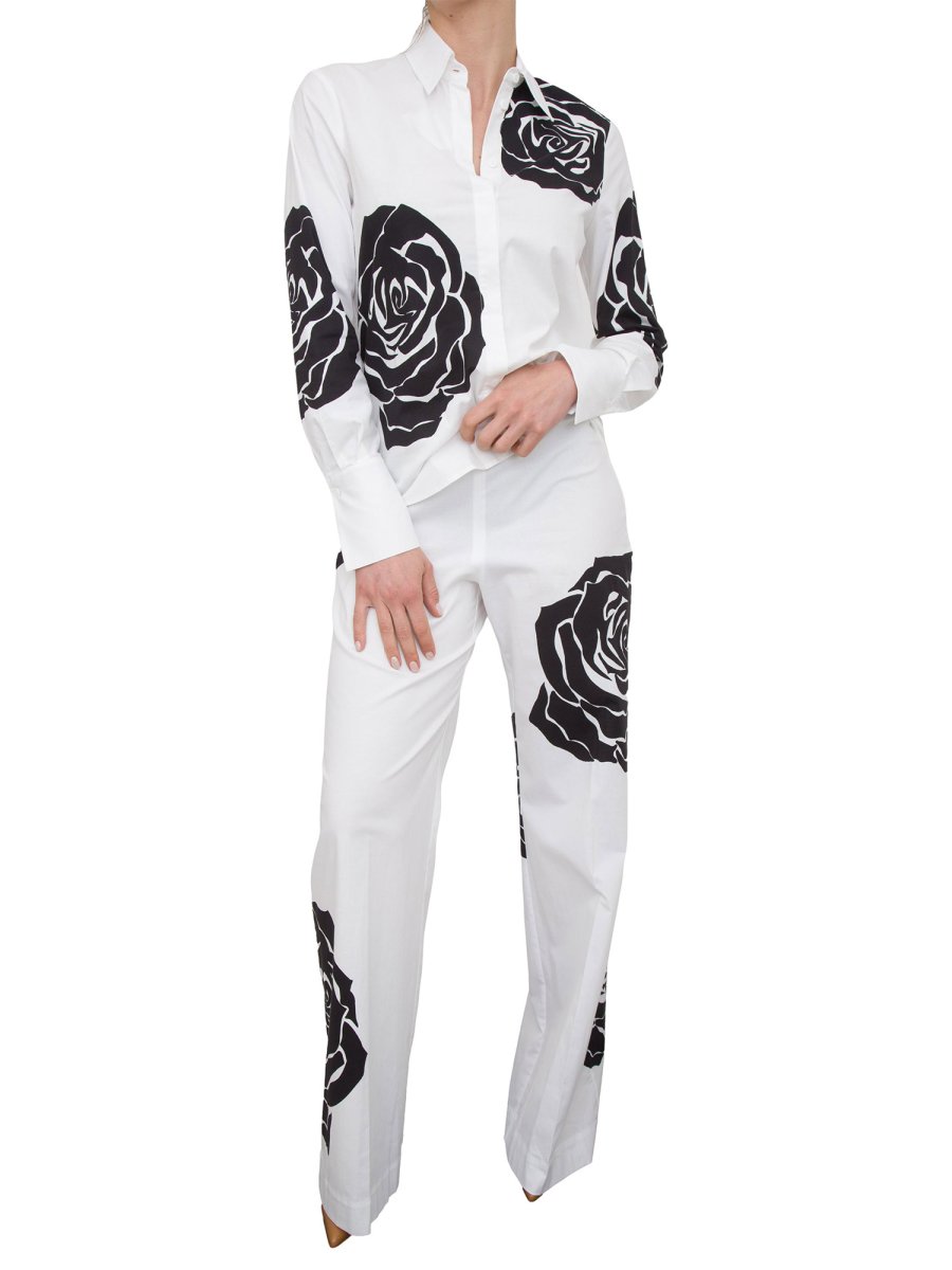 Добавьте графичности в свой стиль с помощью рубашки Blugirl из эластичного хлопкового поплина с нанесенным принтом в виде розы. Модель с классическим воротником, потайной застежкой на пуговицы, длинными рукавами, манжетами на пуговицах и классическим кроем. Сочетайте его с подходящими брюками, чтобы создать эффектный образ.