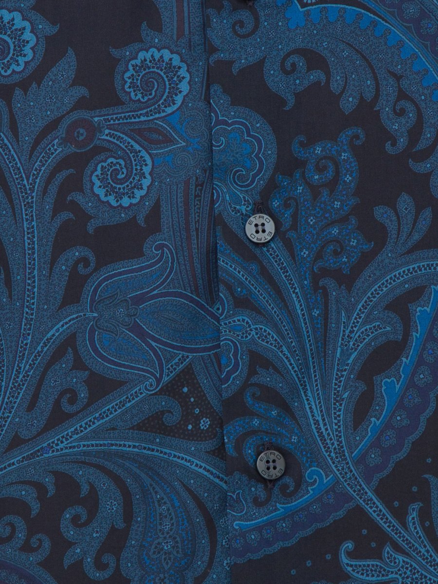 Camicia da uomo Etro in cotone decorata da una stampa Paisley all over, colletto all'italiana, polsini con doppio bottone e vestibilità regular.