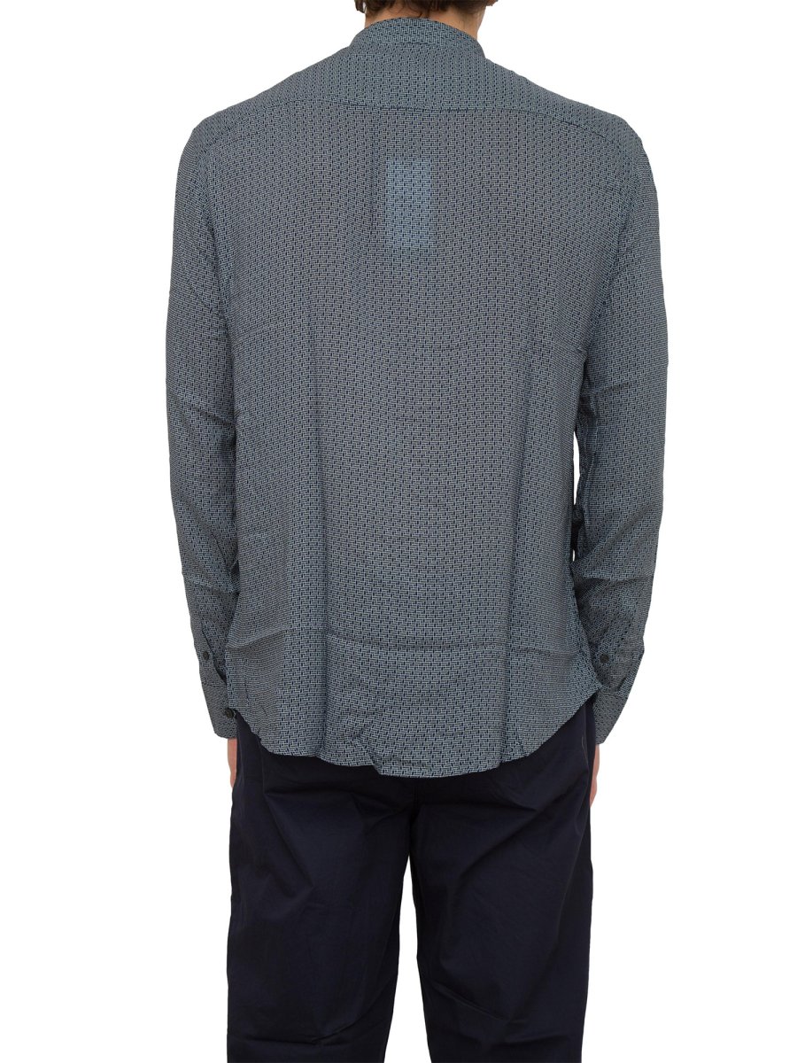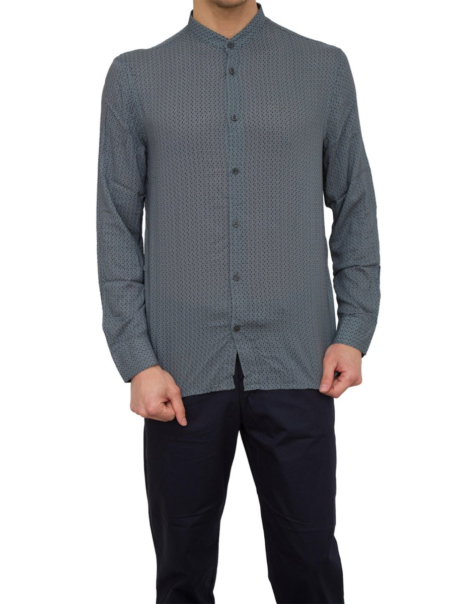Camicia manica lunga Armani Exchange realizzata in viscosa con collo alla coreana e logo brnad a contrasto sul petto.
