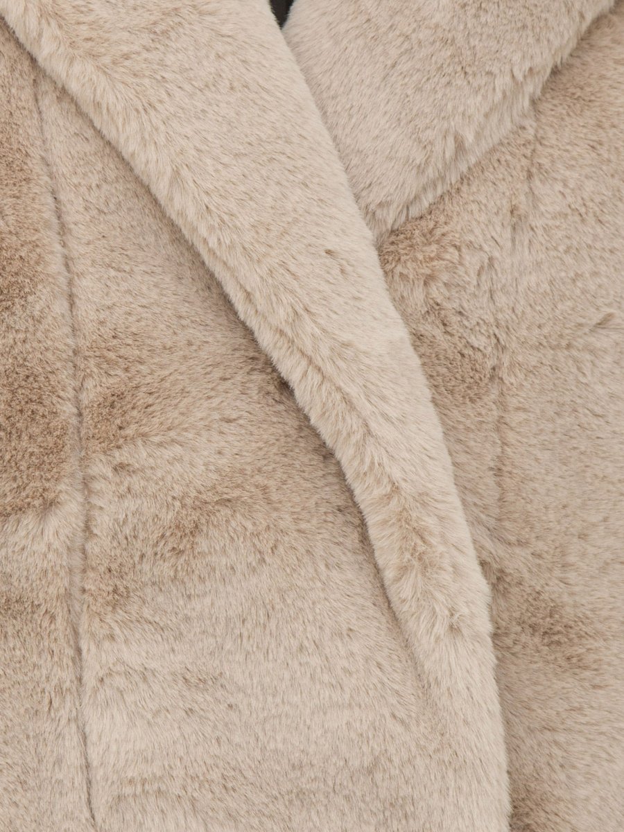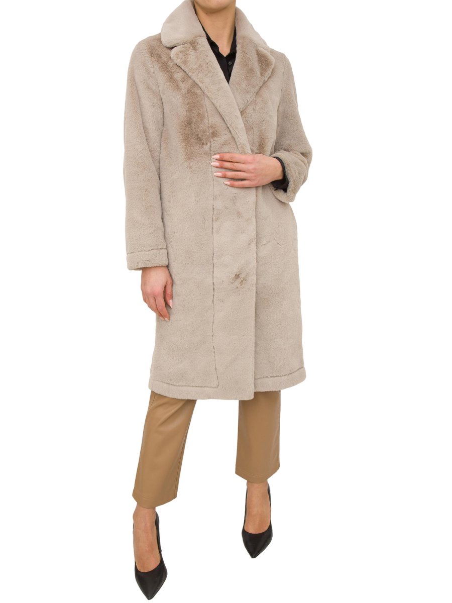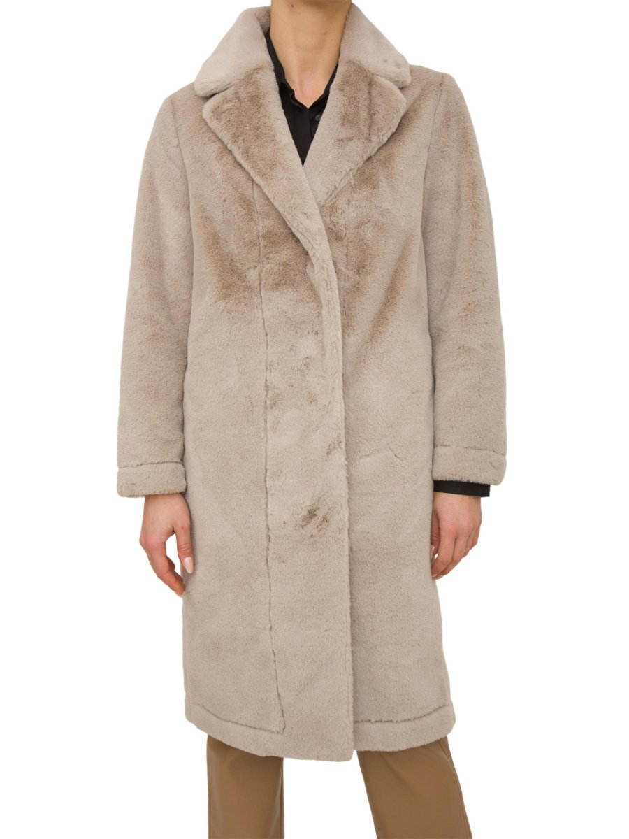 Cappotto reversibile da donna Hetregò realizzato in tessuto eco fur con chiusura con bottoni a pressione e tasche laterali.