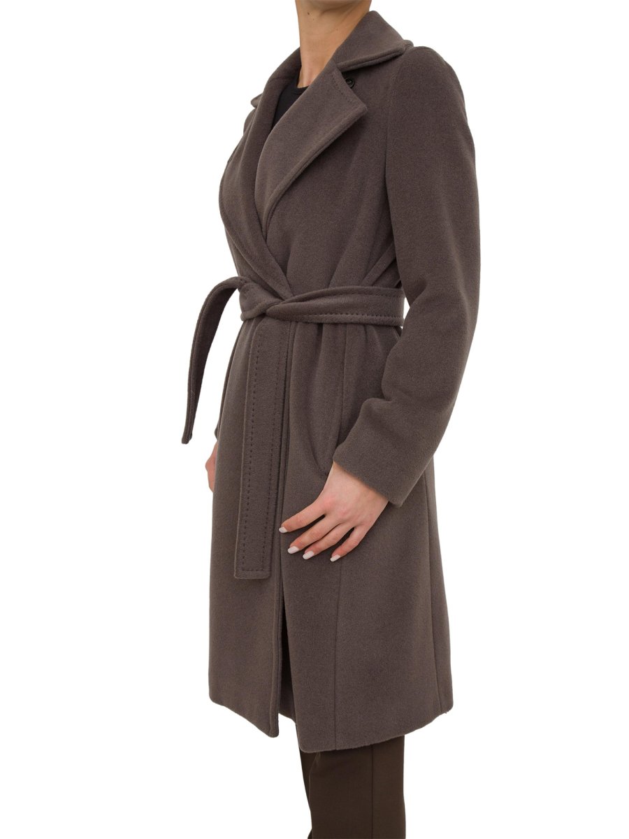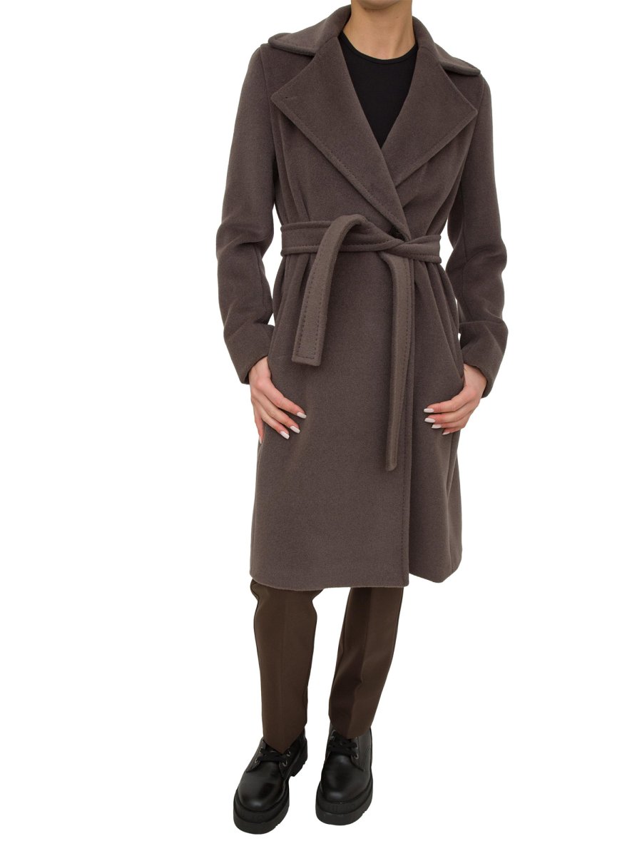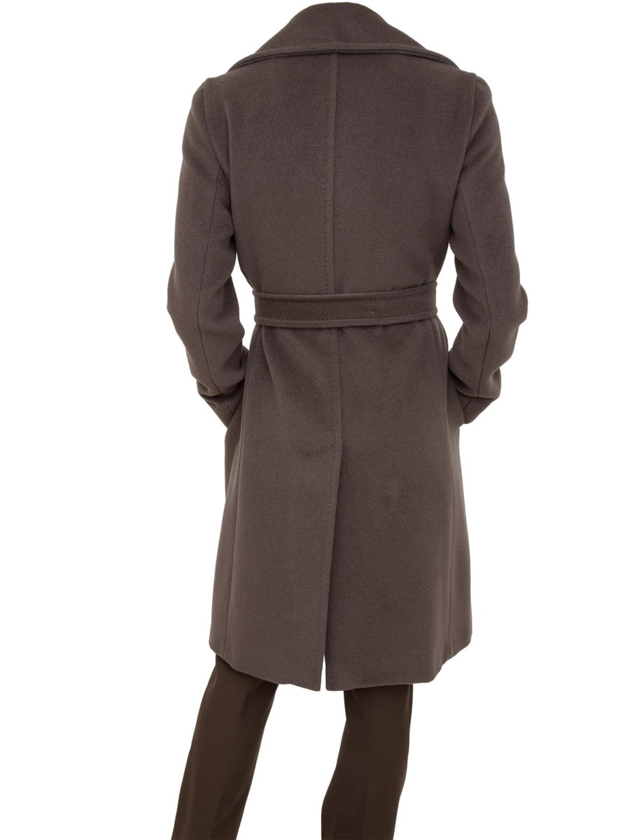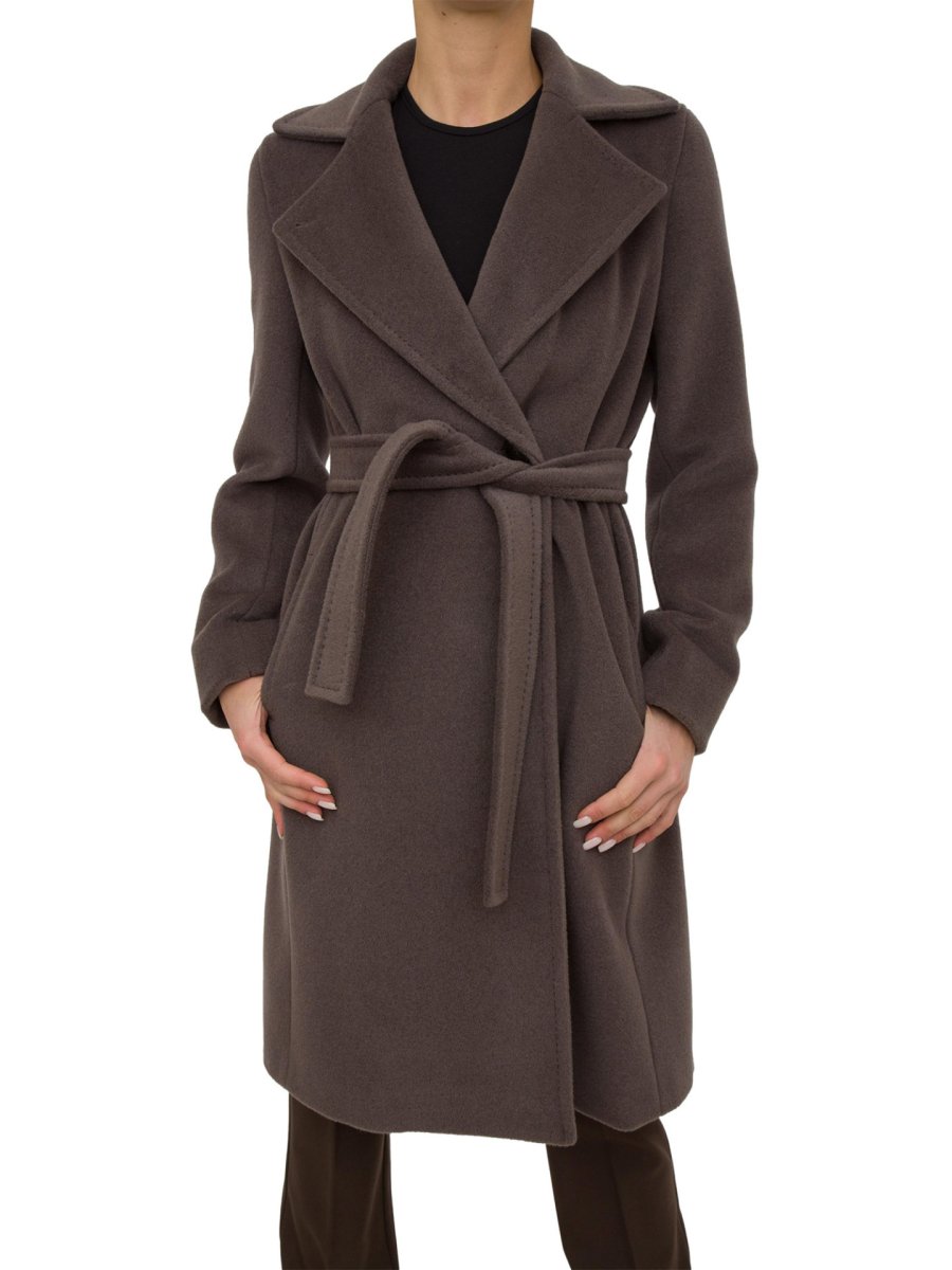 Cappotto in beaver di pura lana, linea dritta. Collo a rever, maniche lunghe. Chiusura con bottone leggermente asimmetrico, tasche inserite. Spacco centrale sul retro. Foderato. Cintura coordinata.