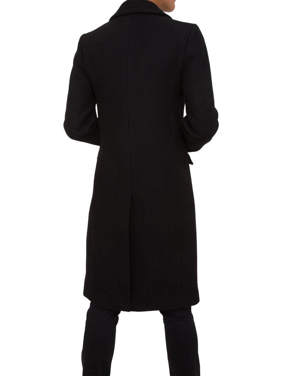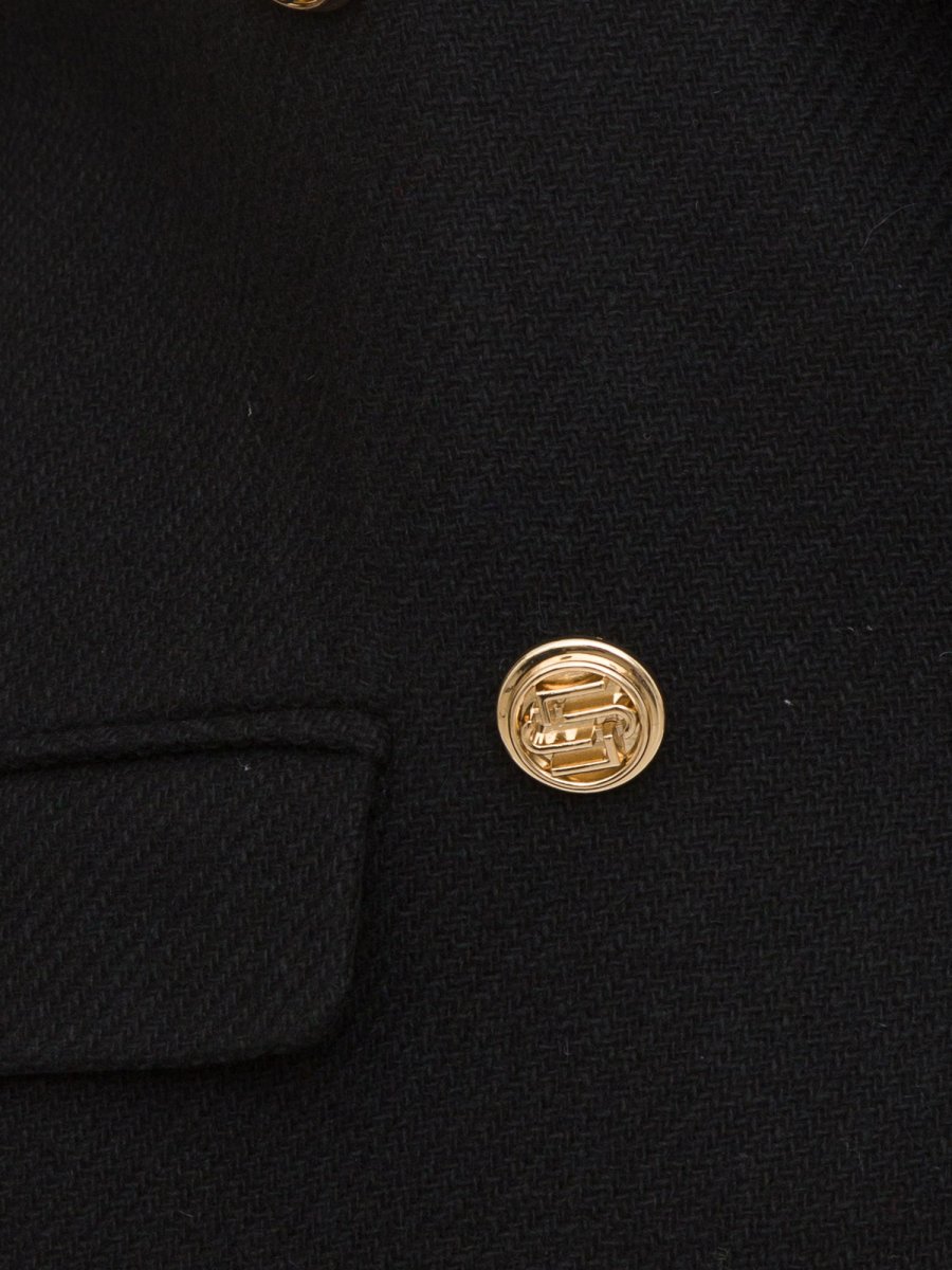 Cappotto da donna LIU-JO in misto lana con chiusura doppiopetto a bottoni in metallo con logo. Scollo a rever e tasche laterali con patta. Spacco centrale al fondo posteriore.
