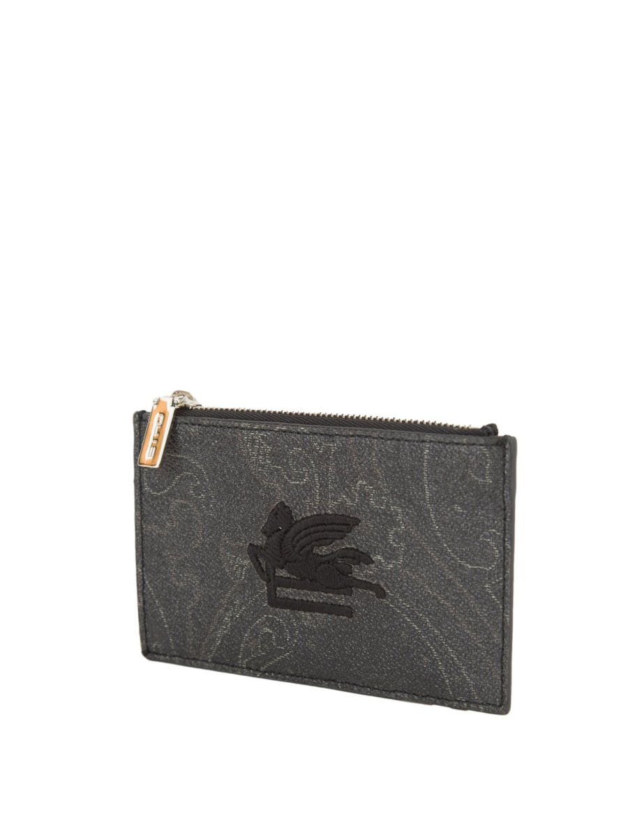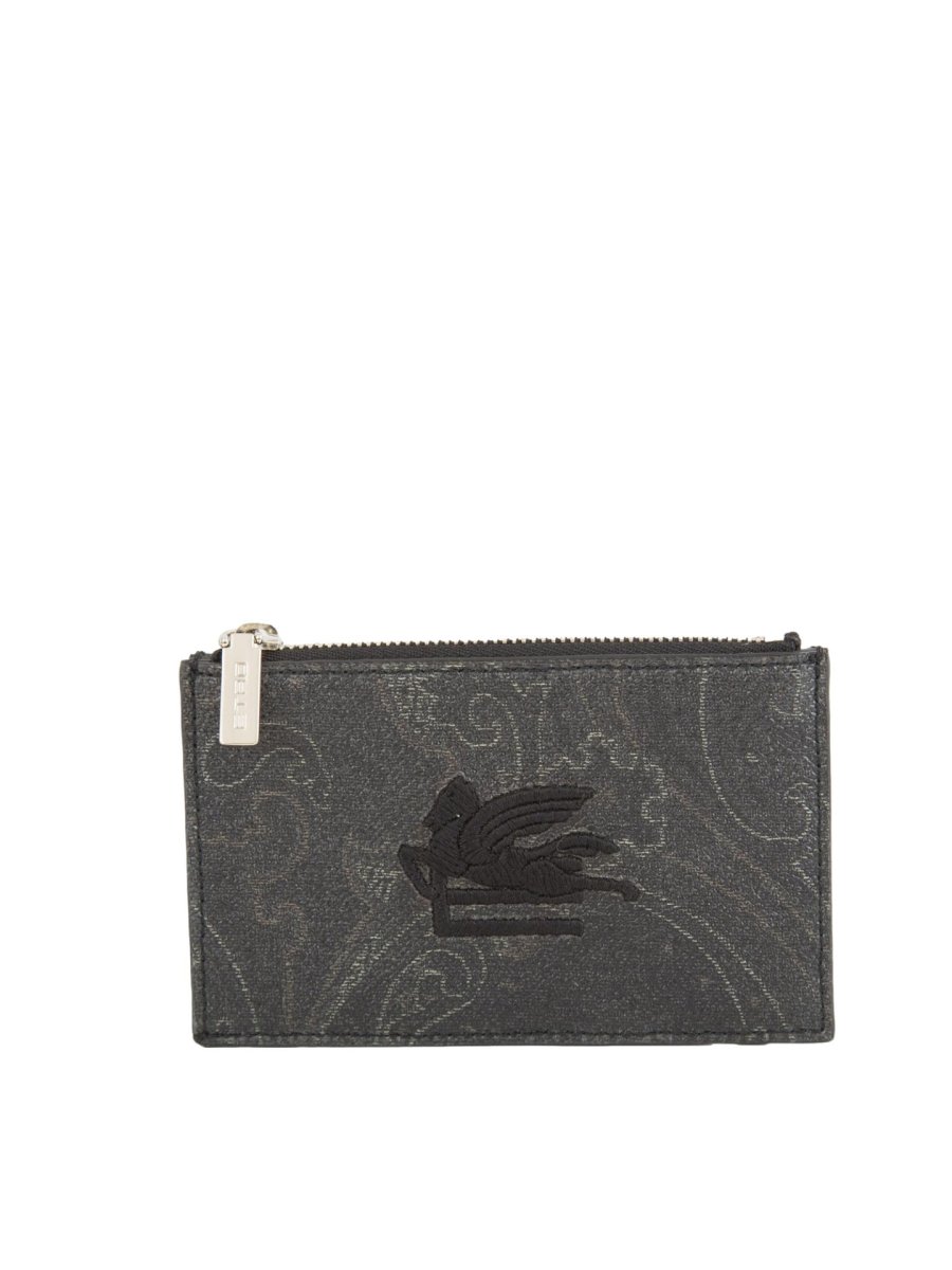 Визитница из культовой жаккардовой ткани с рисунком пейсли. Аксессуар украшен вышитыми спереди логотипами ETRO и Pegaso.