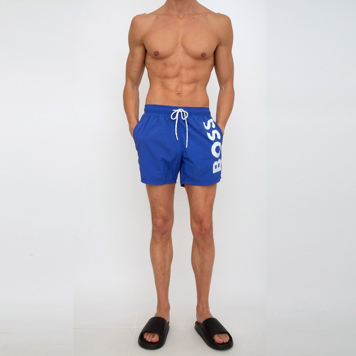 - Описание100%Boxer da mare con coulisse BOSS interamente foderati in materiale ad asciugatura rapida con logo stampato di grandi dimensioni sulla gamba sinistra.
