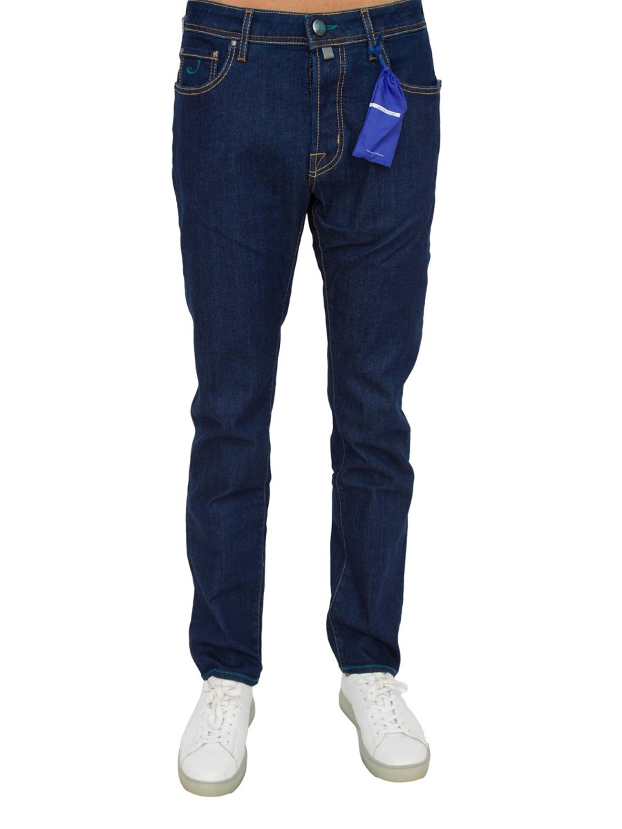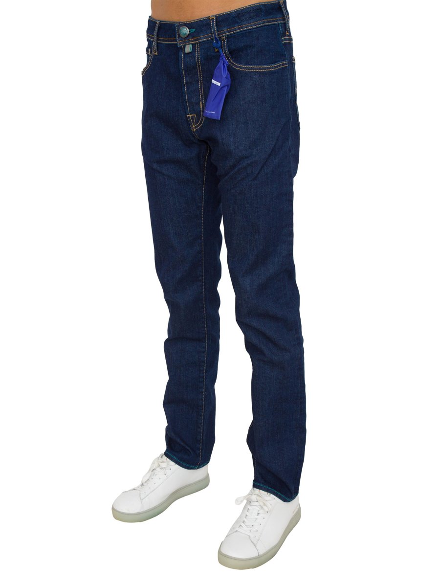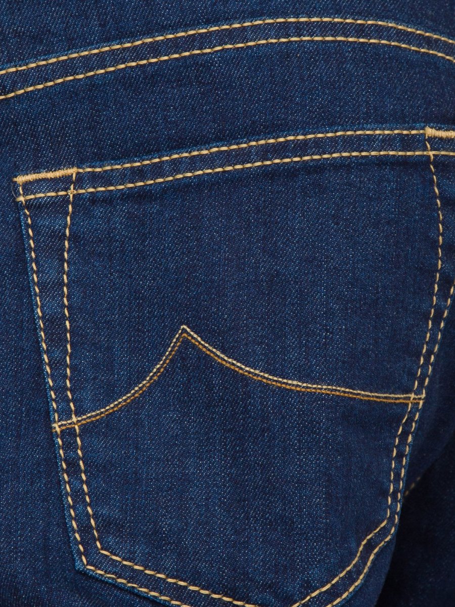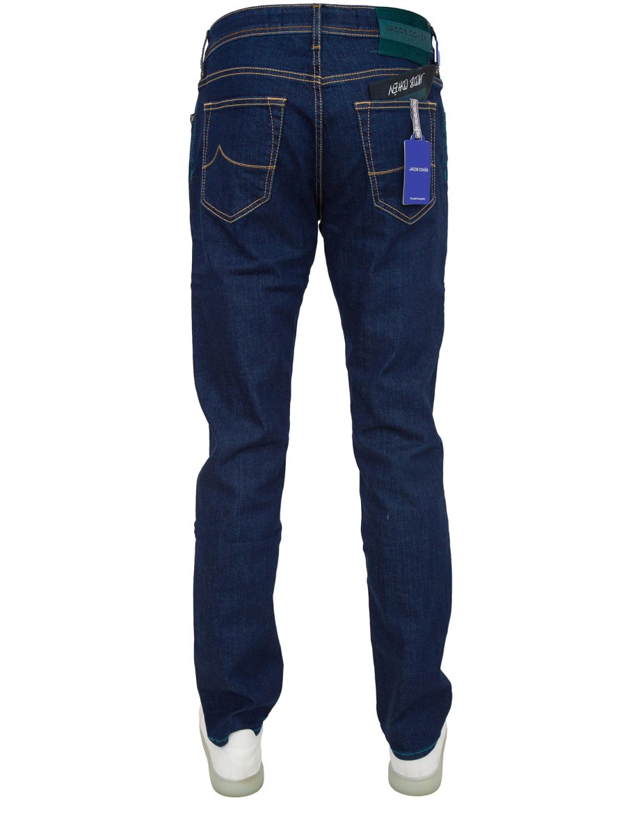 Jeans da uomo Jacob Cohen realizatto in misto cotone, vestibilità slim e iconico fazzoletto sulla tasca posteriore.