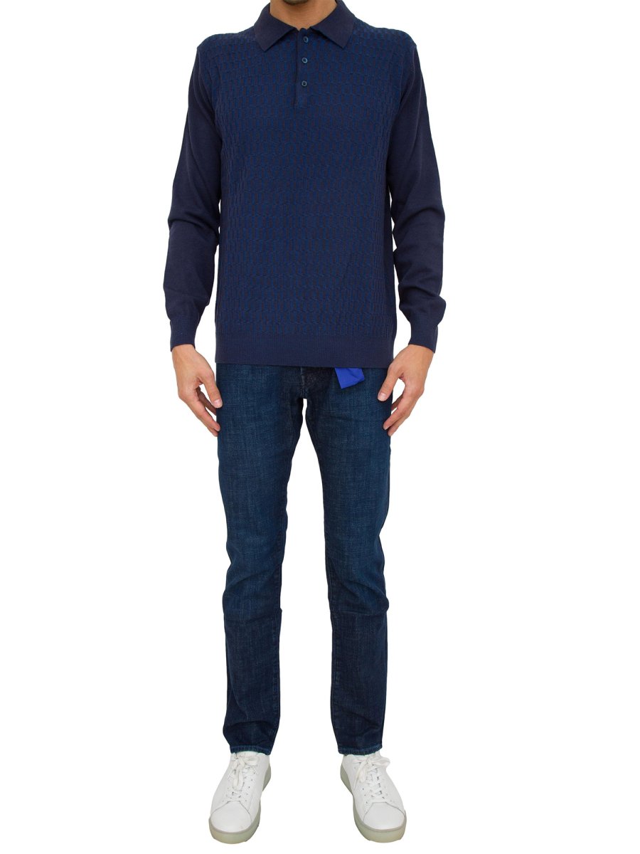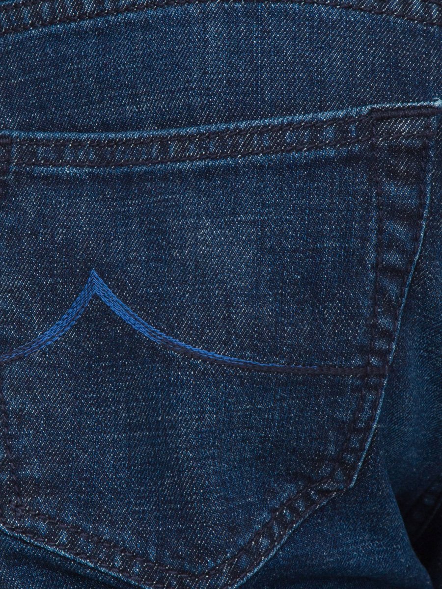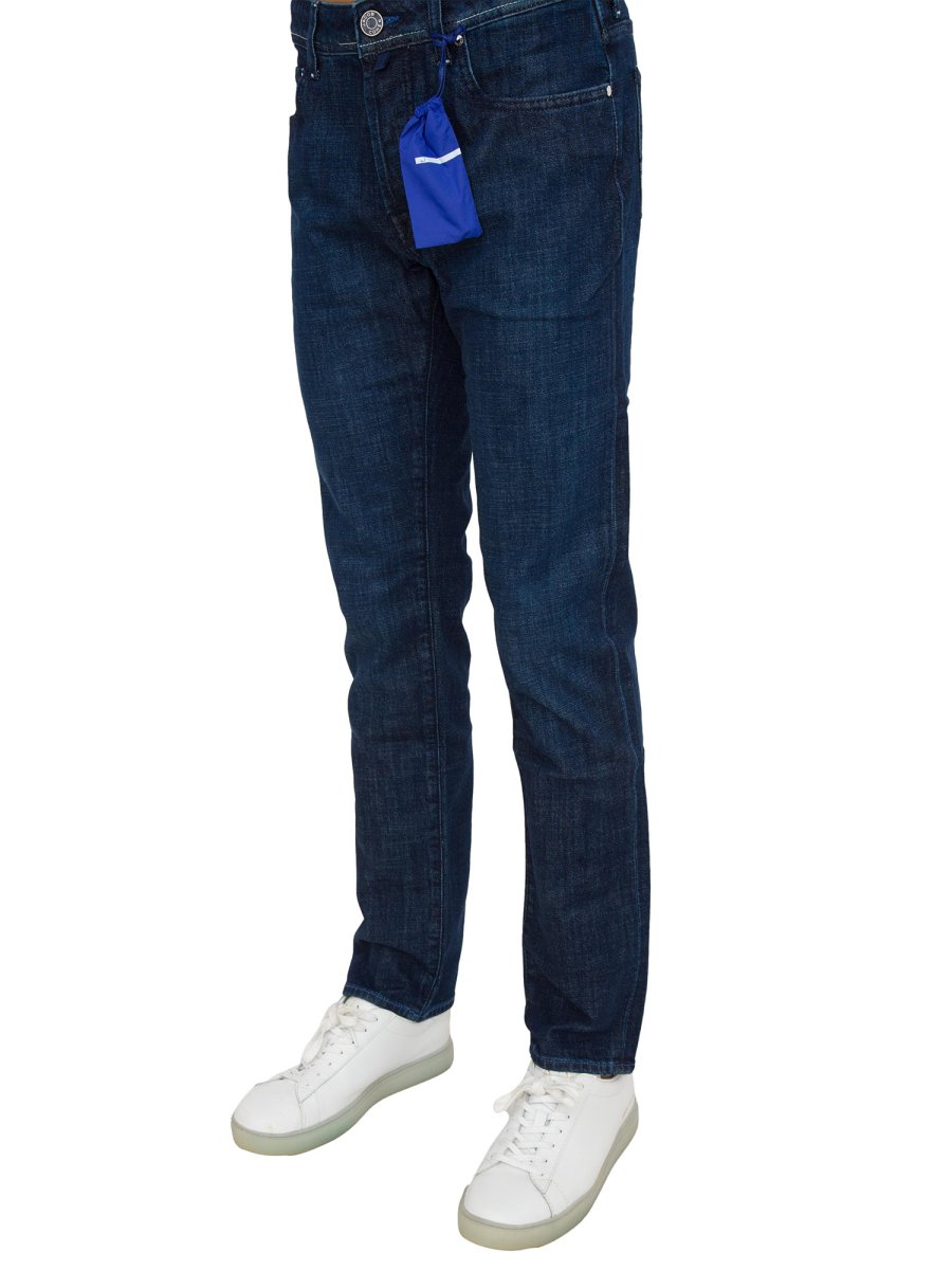 Jeans da uomo Jacob Cohen realizatto in misto cotone, vestibilità slim e iconico fazzoletto sulla tasca posteriore.