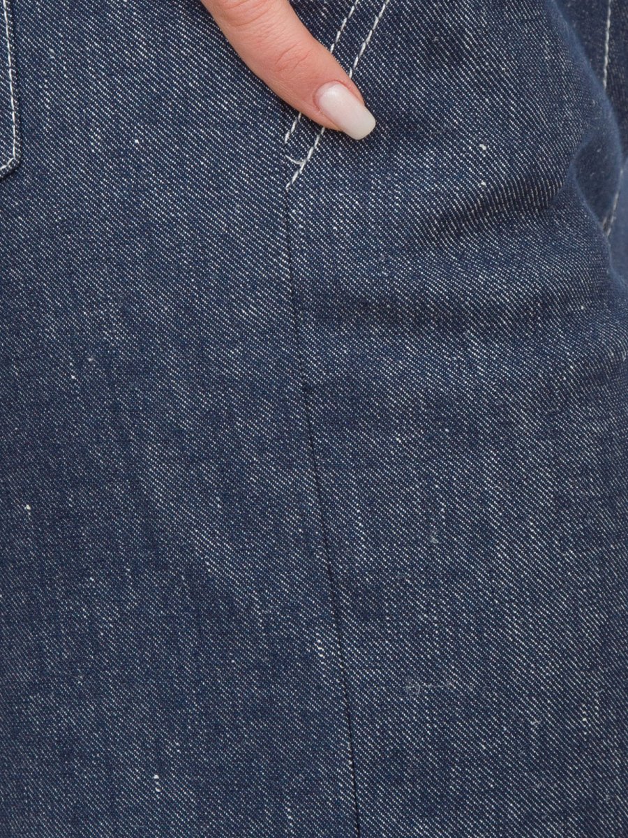 Pantaloni in misto lino e cotone stretch, linea dritta con impunture e risvolto sul fondo, chiusura con bottone e zip nascosta, tasche alla francese davanti, applicate dietro e piega stirata fronte e retro.