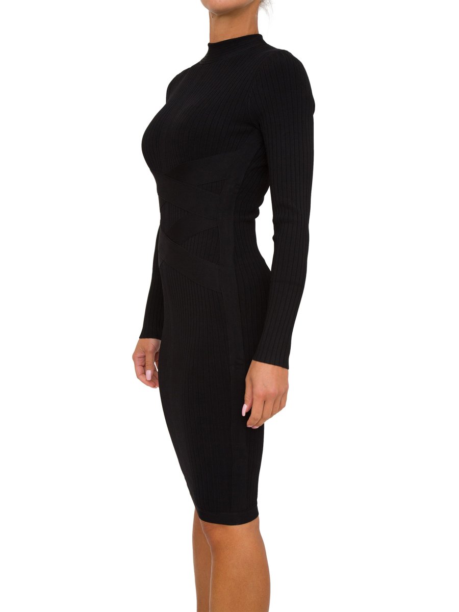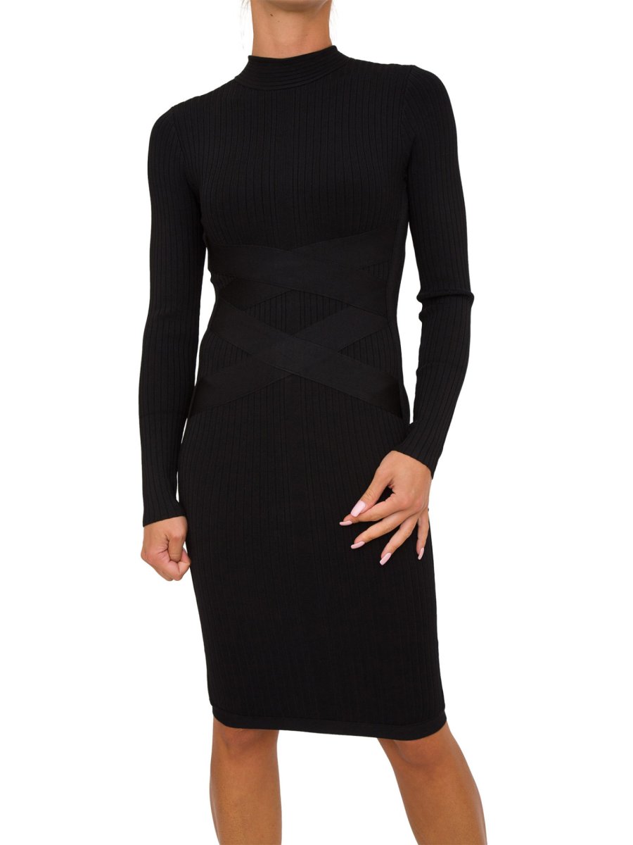 Vestito da donna Guess By Marciano realizzato in misto viscosa, girocollo, maniche lunghe, vestibilità slim e chiusura sul retro con cerniera.