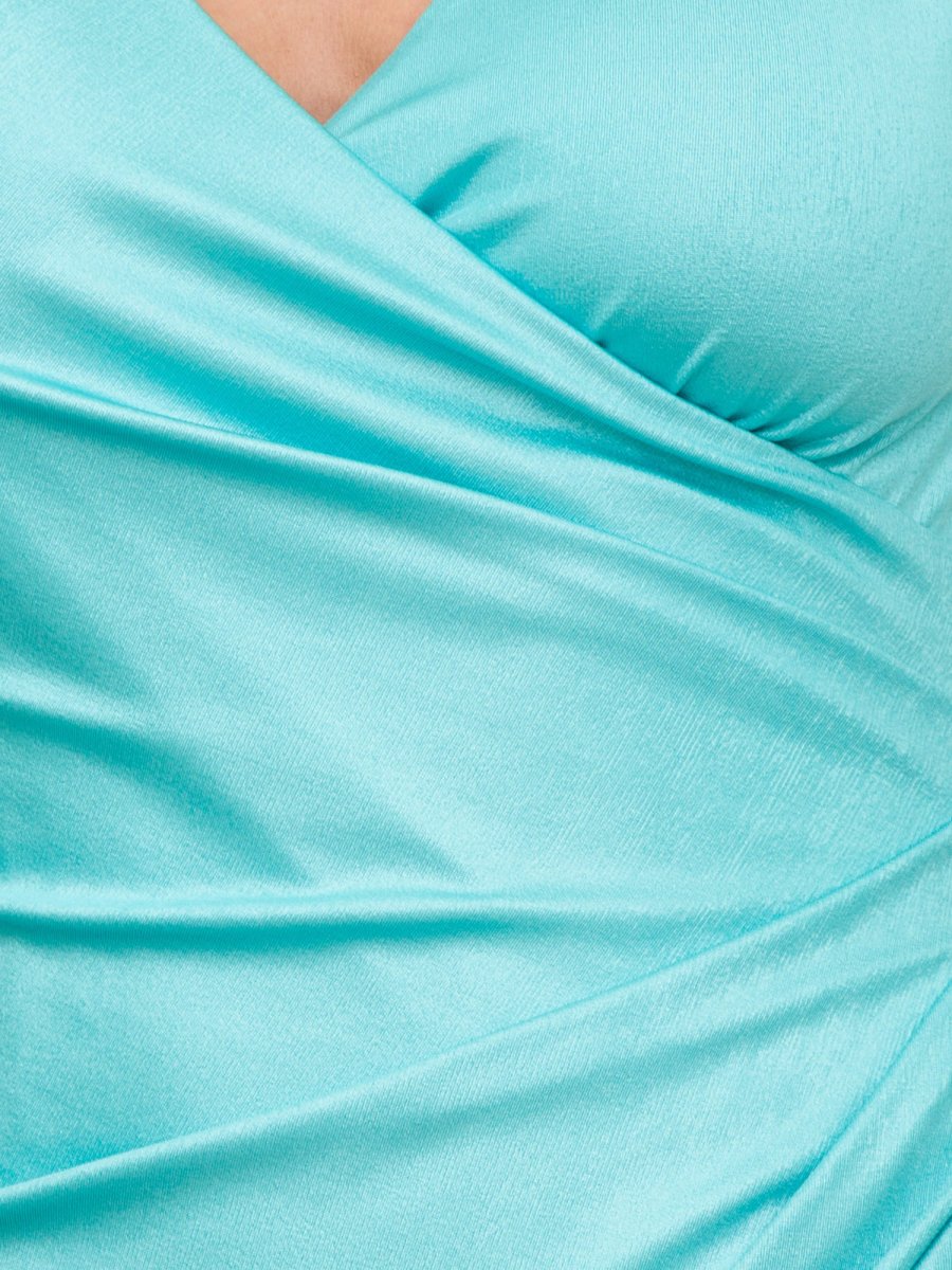 Abito senza maniche lungo in tessuto lucido, scollo ad incrocio, e con spacco sul davanti.
