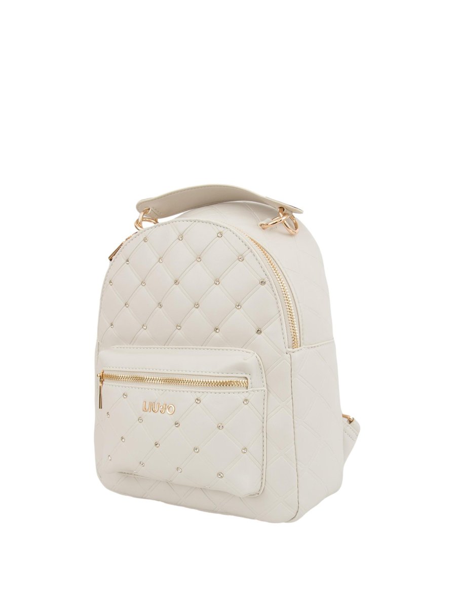 Zaino Liu Jo donna realizzato in PU effetto nappa trapuntata, strass applicati, logo in metallo sul davanti, spallacci regolabili, tasca frontale con zip, tasca interna e chiusura con zip.