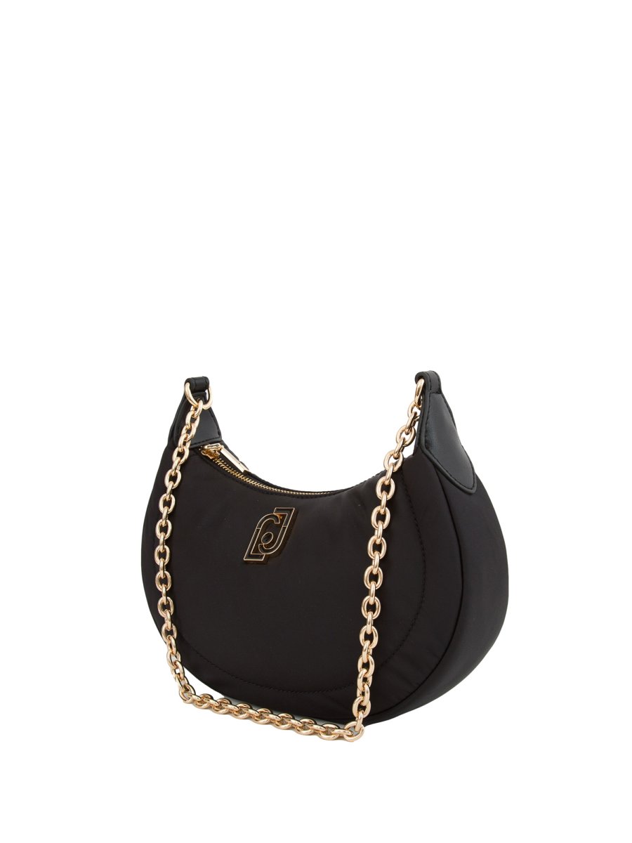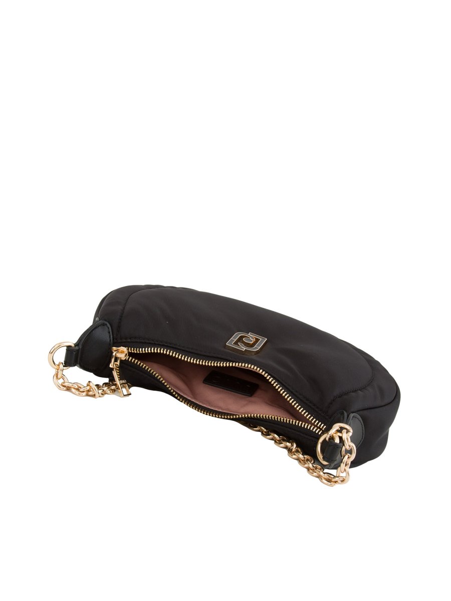 Borsetta a mano in nylon Liu-Jo, manico a catena, logo in metallo sul davanti, etichetta interna logata e chiusura con zip.