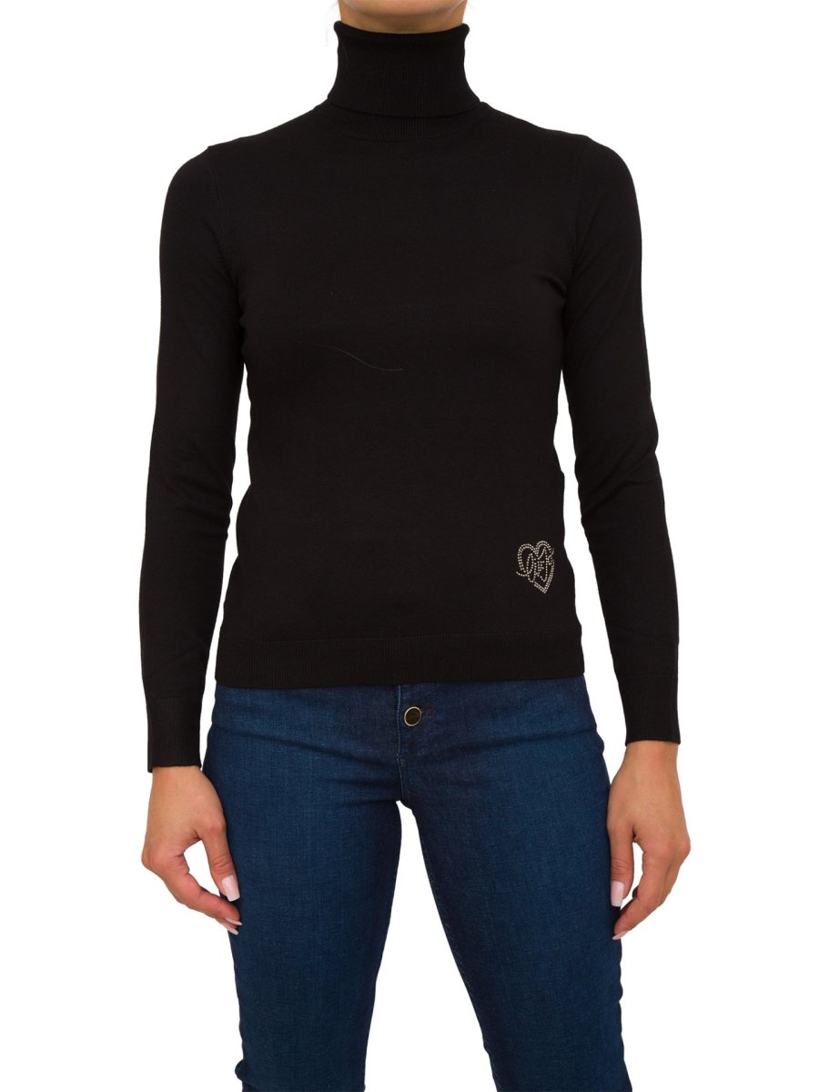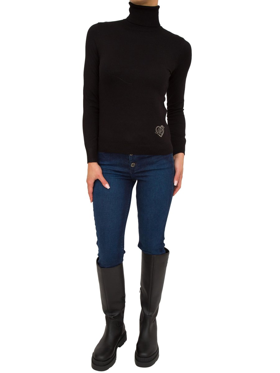 Dolcevita da donna Liu-Jo realizzato in maglia di misto viscosa, maniche lunghe, cuore con logo e strass al fondo e bordi rifiniti a costine.