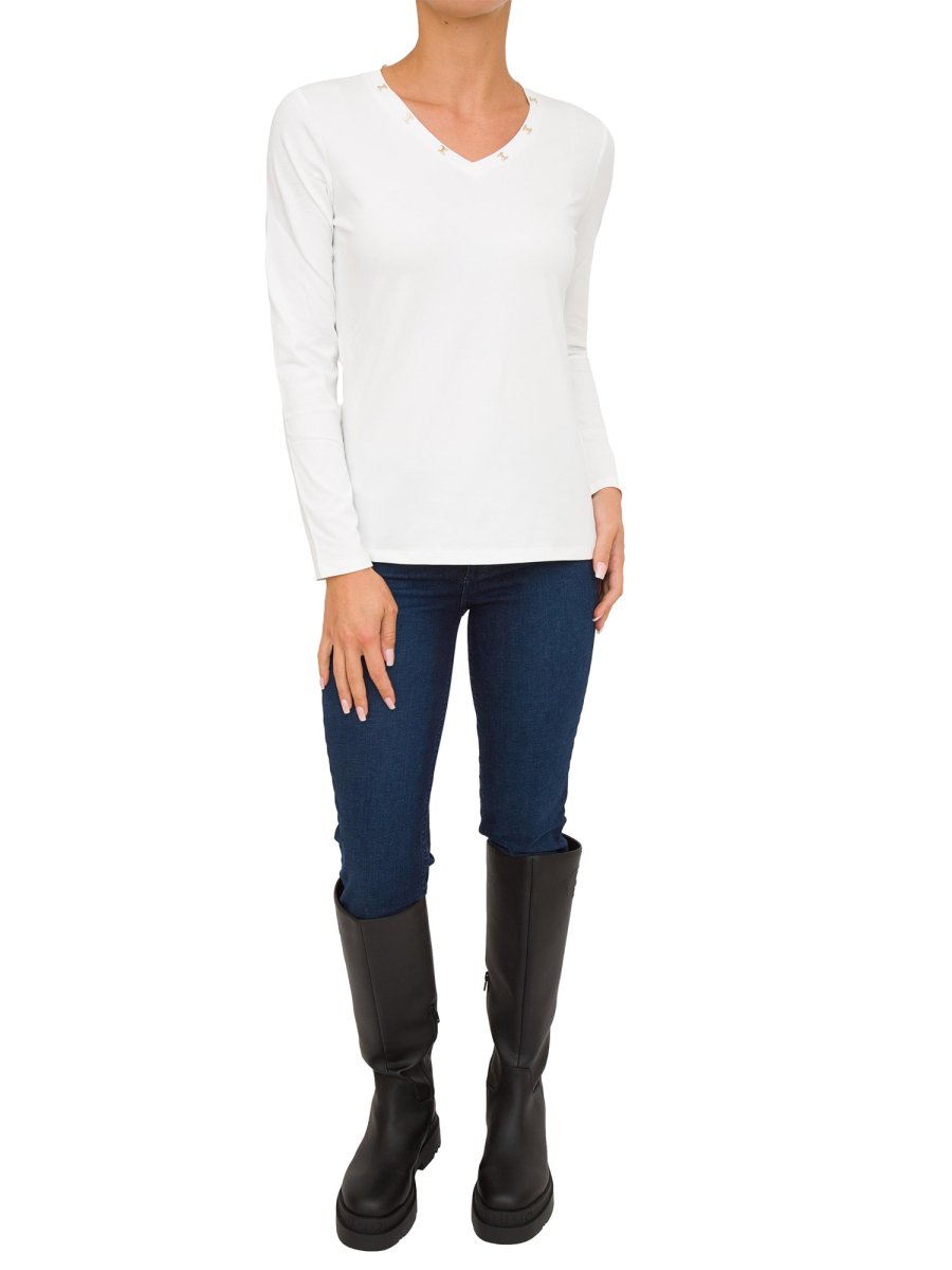 T-shirt da donna Liu-jo in jersey di cotone stretch, lettering LJ in metallo, scollo a V e maniche lunghe.
