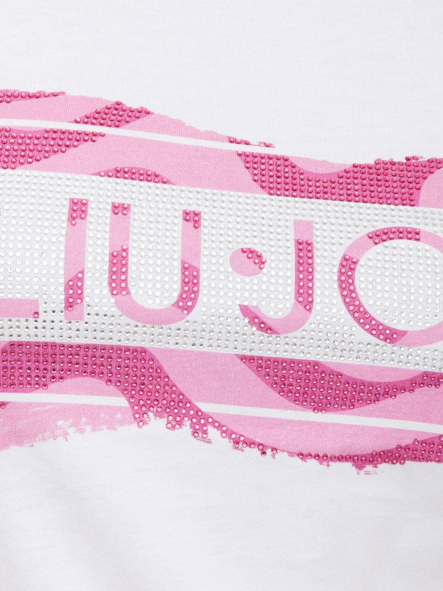 T-shirt liu-jo realizzata in jersey di cotone, stampa con logo e strass sul davanti, scollo rotondo e maniche corte.