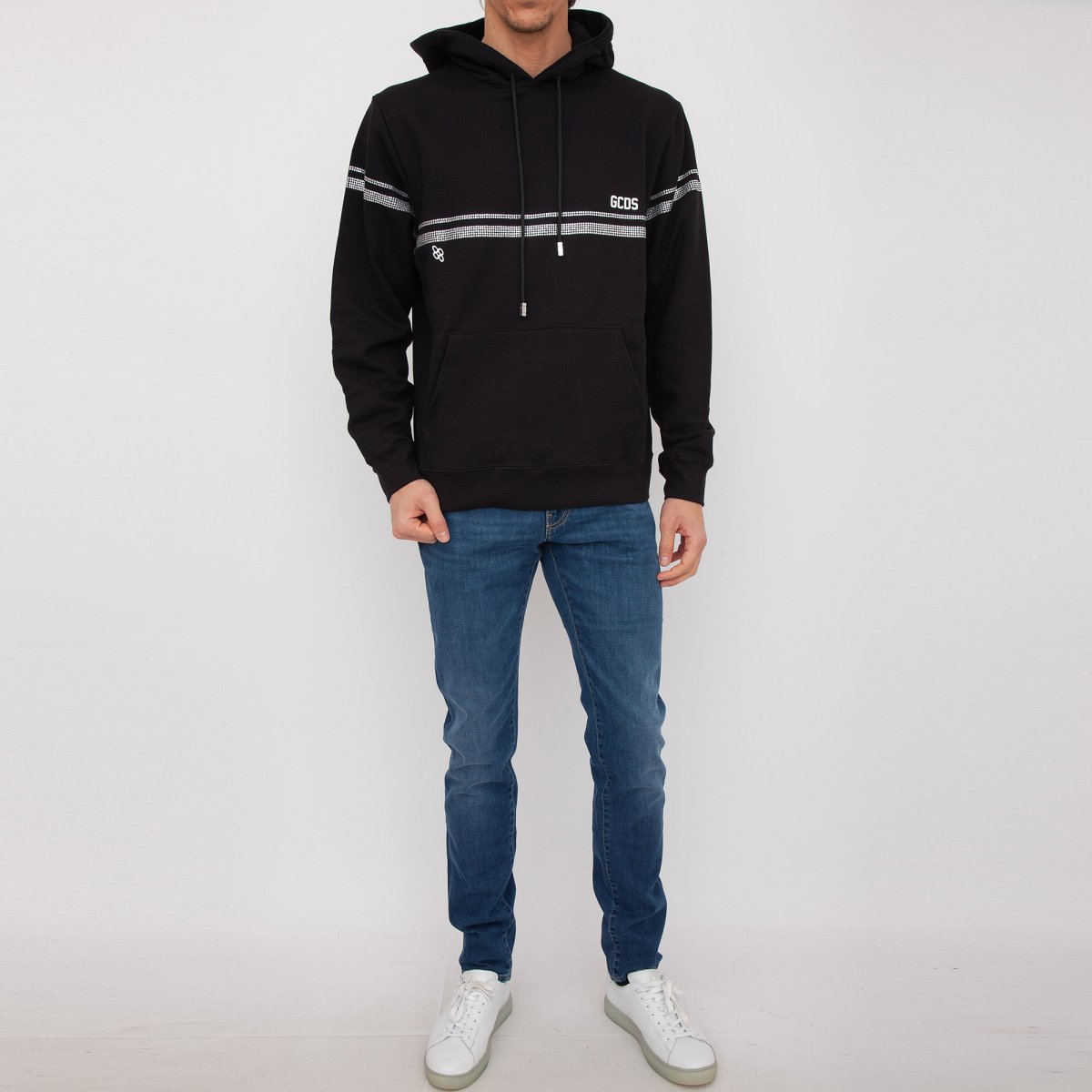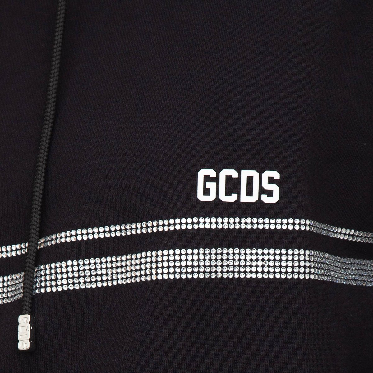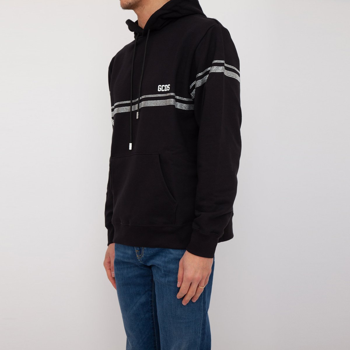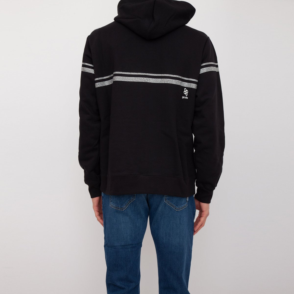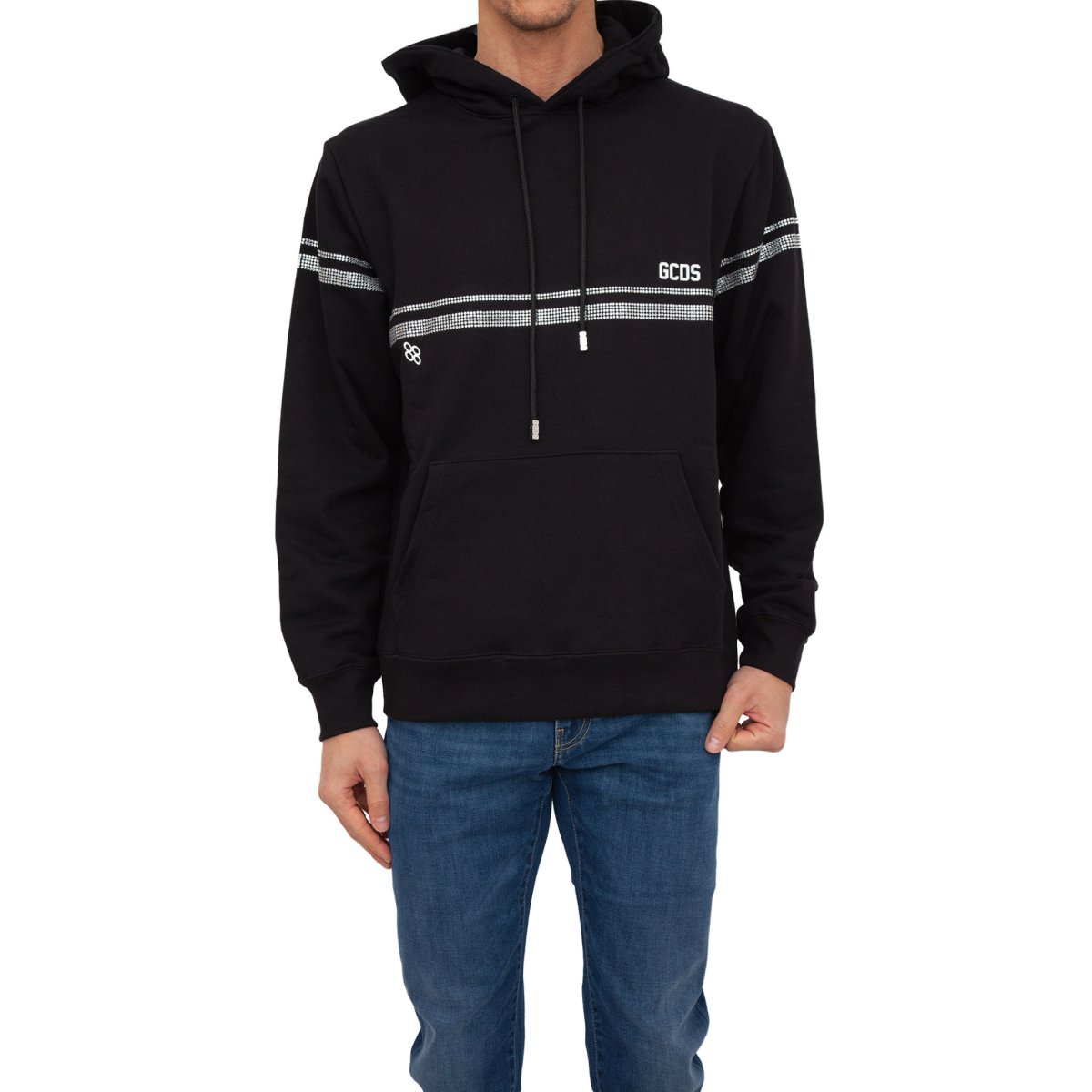 Felpa a maniche lunghe con cappuccio regolabile. Grafica "GCDS Stripes" e termo strass applicati sul davanti, sul retro e sulle maniche. Stampa del logo "GCDS Bliss" sul davanti e sul retro. Taglia over-size.