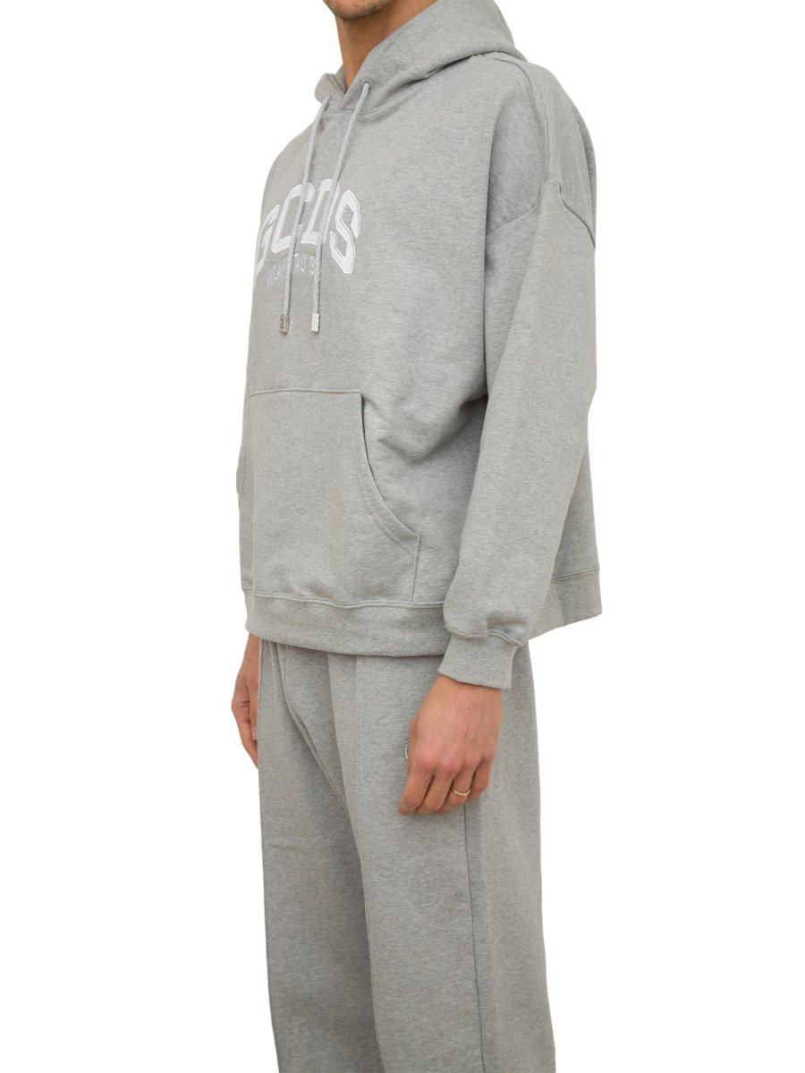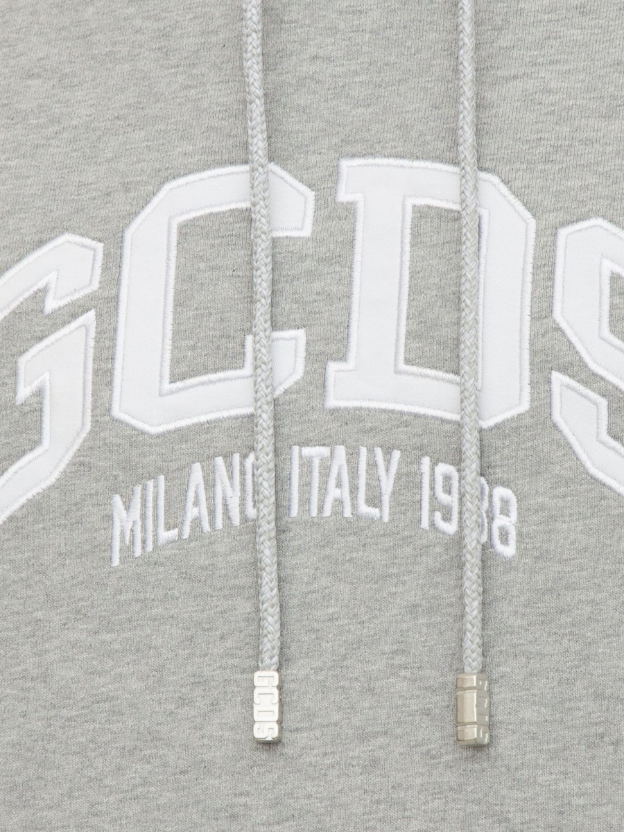 Felpa oversize realizzata in jersey di cotone. Cappuccio regolabile con lacci e finecorda logati. Maniche lunghe con polsino e tasca a marsupio. La felpa, icona di stagione, è caratterizzata dal logo "GCDS Lounge" a contrasto riapplicato sulla parte anteriore.