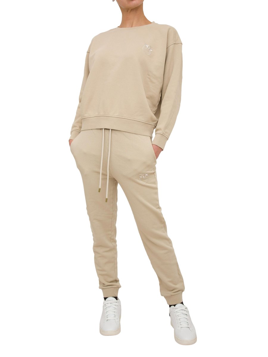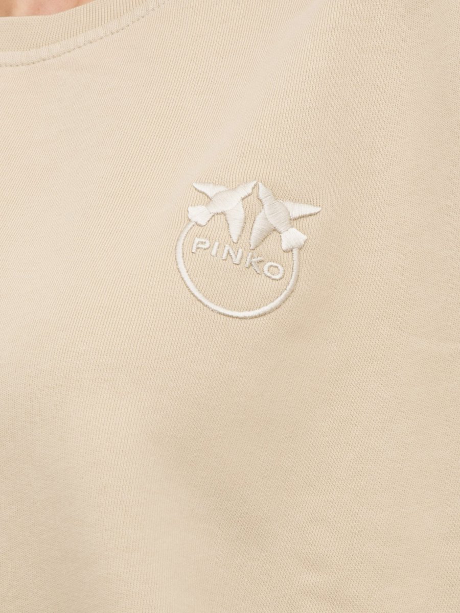 Felpa classica girocollo in cotone personalizzata con logo Love Birds con lettering PINKO applicato, dal particolare effetto lucido. Maniche lunghe a giro basso, polsini e fondo capo con elastico.