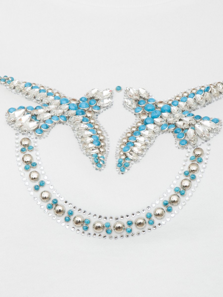 Классическая толстовка Pinko с круглым вырезом из хлопкового трикотажа, украшенная вышитым логотипом Love Birds, выполненным из стразов, жемчужин и бриллиантов спереди. Прямой крой толстовки с длинными рукавами подойдет к вашему повседневному образу, придав ему оригинальный и спортивный вид с характерным ювелирным акцентом.