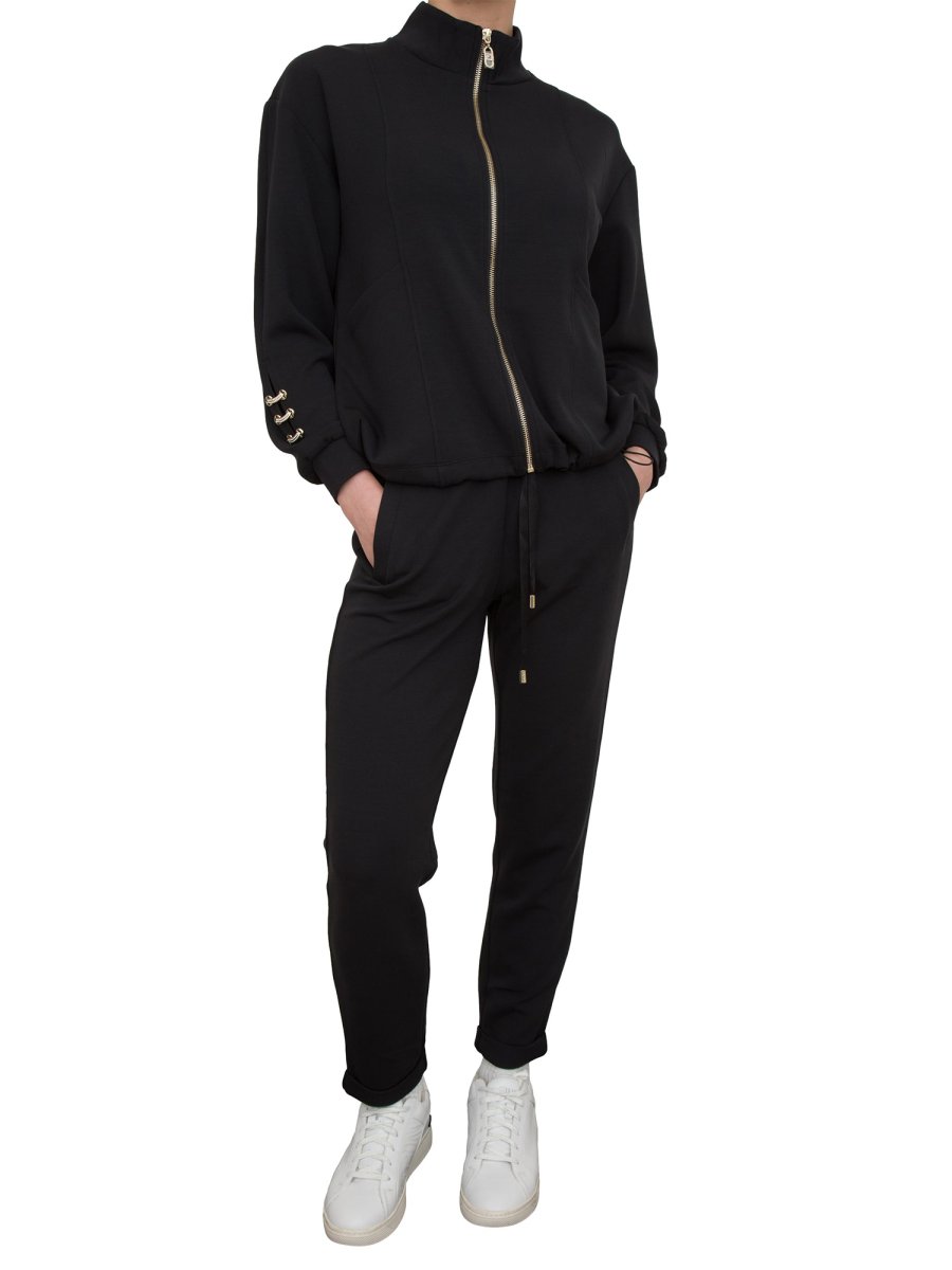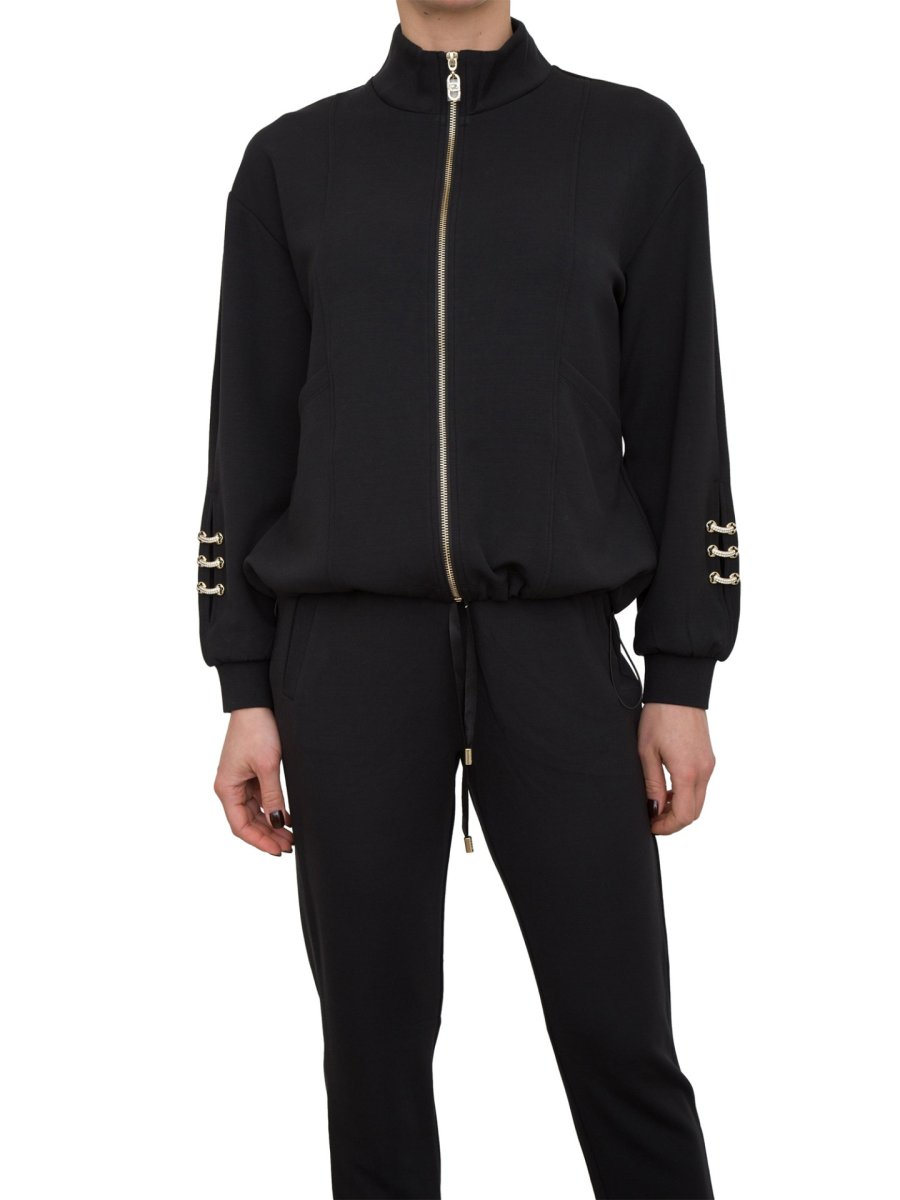 Толстовка Liu Jo на молнии с эластичным шнурком внизу, вырезанным мотивом с драгоценными камнями внизу рукава и металлическим логотипом, пришитым на спине. Идеально подходит для повседневных и спортивных нарядов.