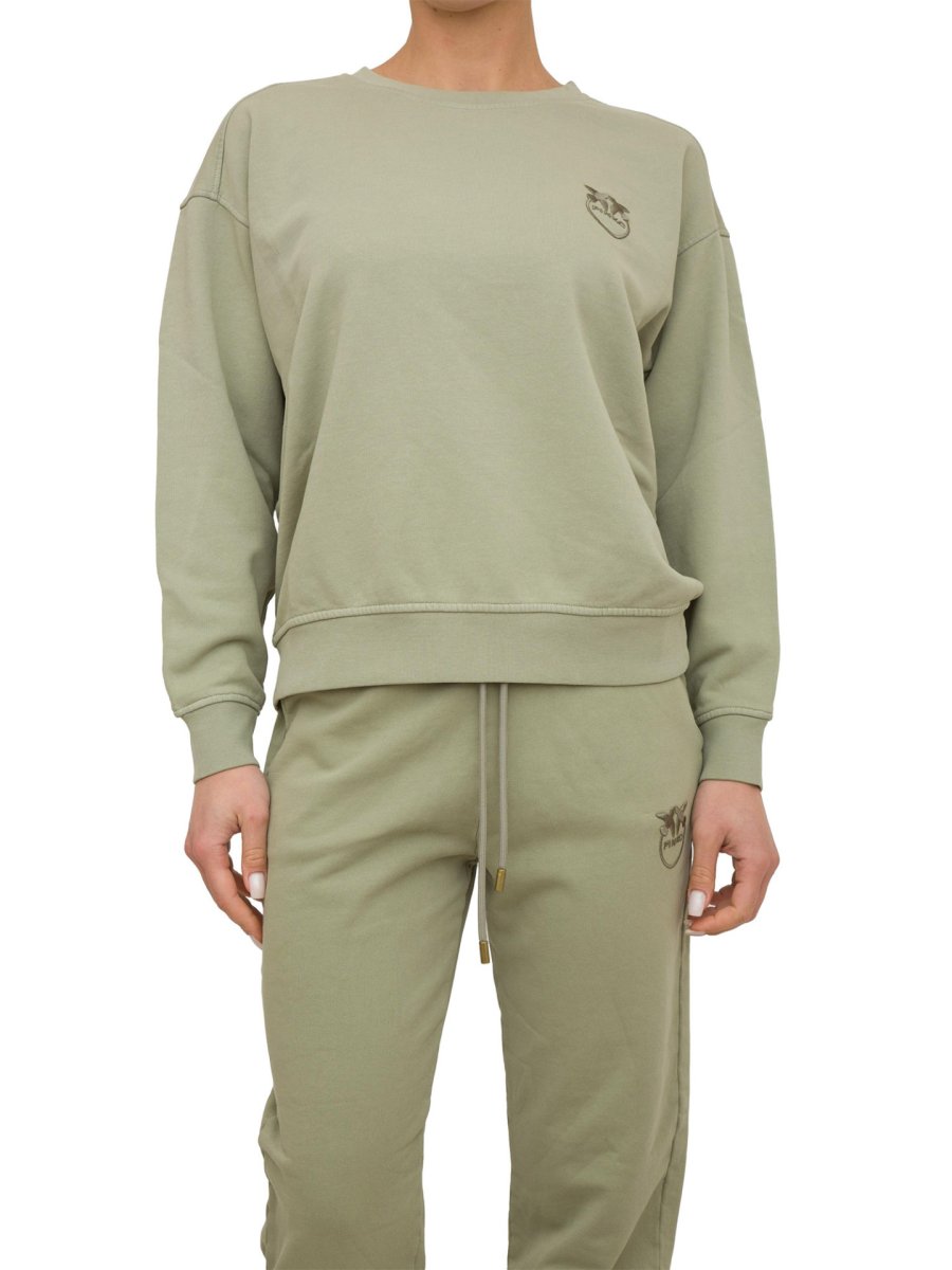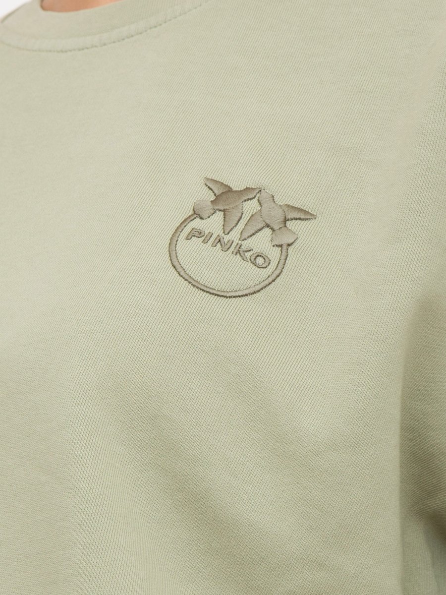 Felpa classica girocollo in cotone personalizzata con logo Love Birds con lettering PINKO applicato, dal particolare effetto lucido. Maniche lunghe a giro basso, polsini e fondo capo con elastico.