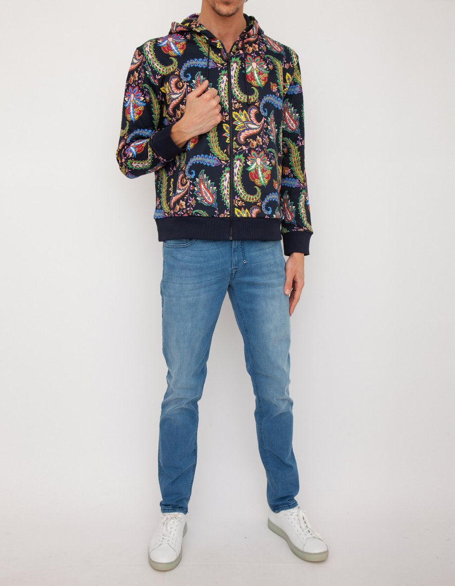 Мужская толстовка ETRO FELPA ZIP CAPPUCCIO BLU